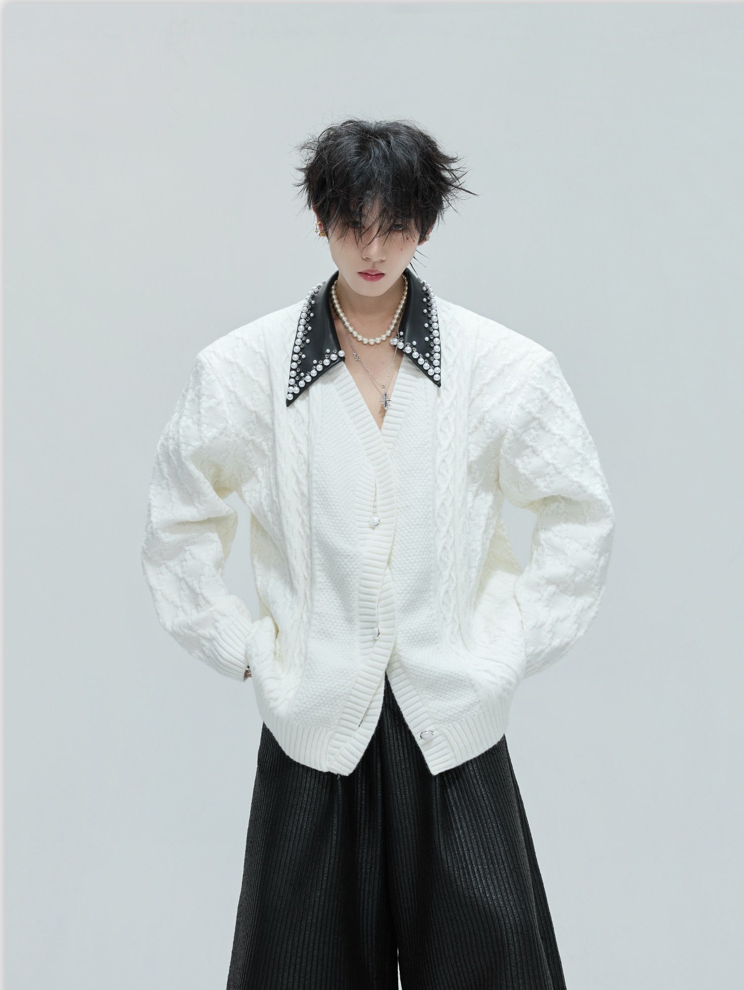 Pearl Collar Knit Cardigan