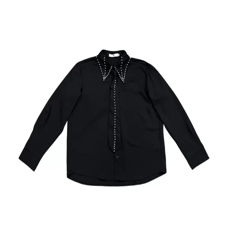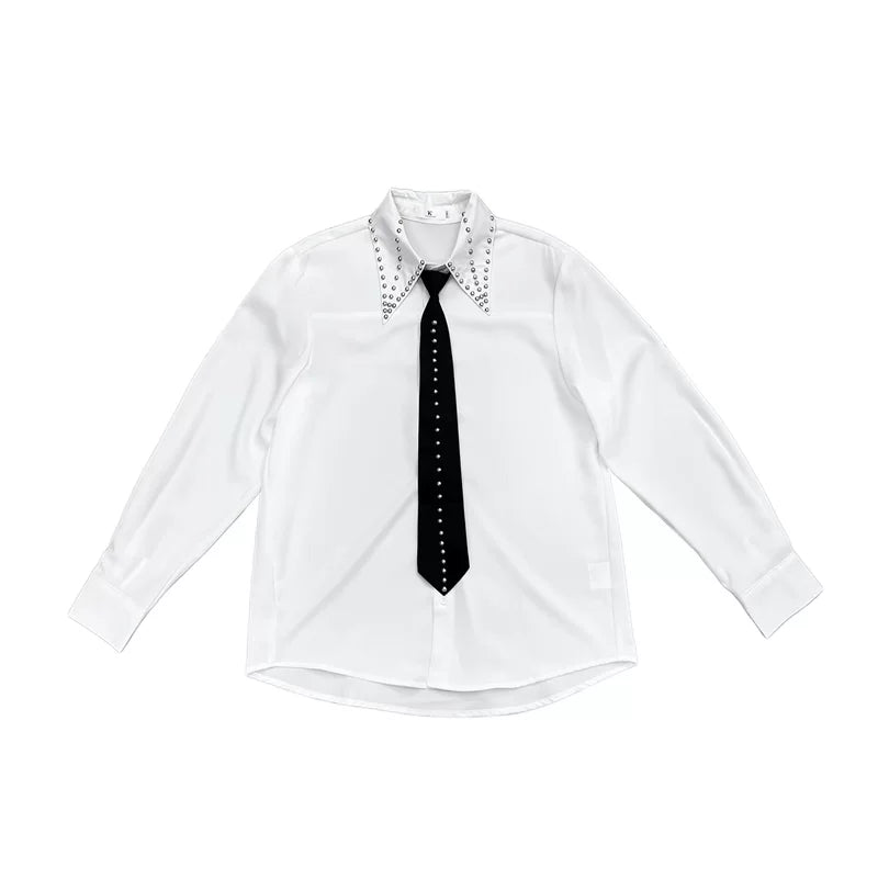 Studded Tie Accent Long Sleeve Shirt