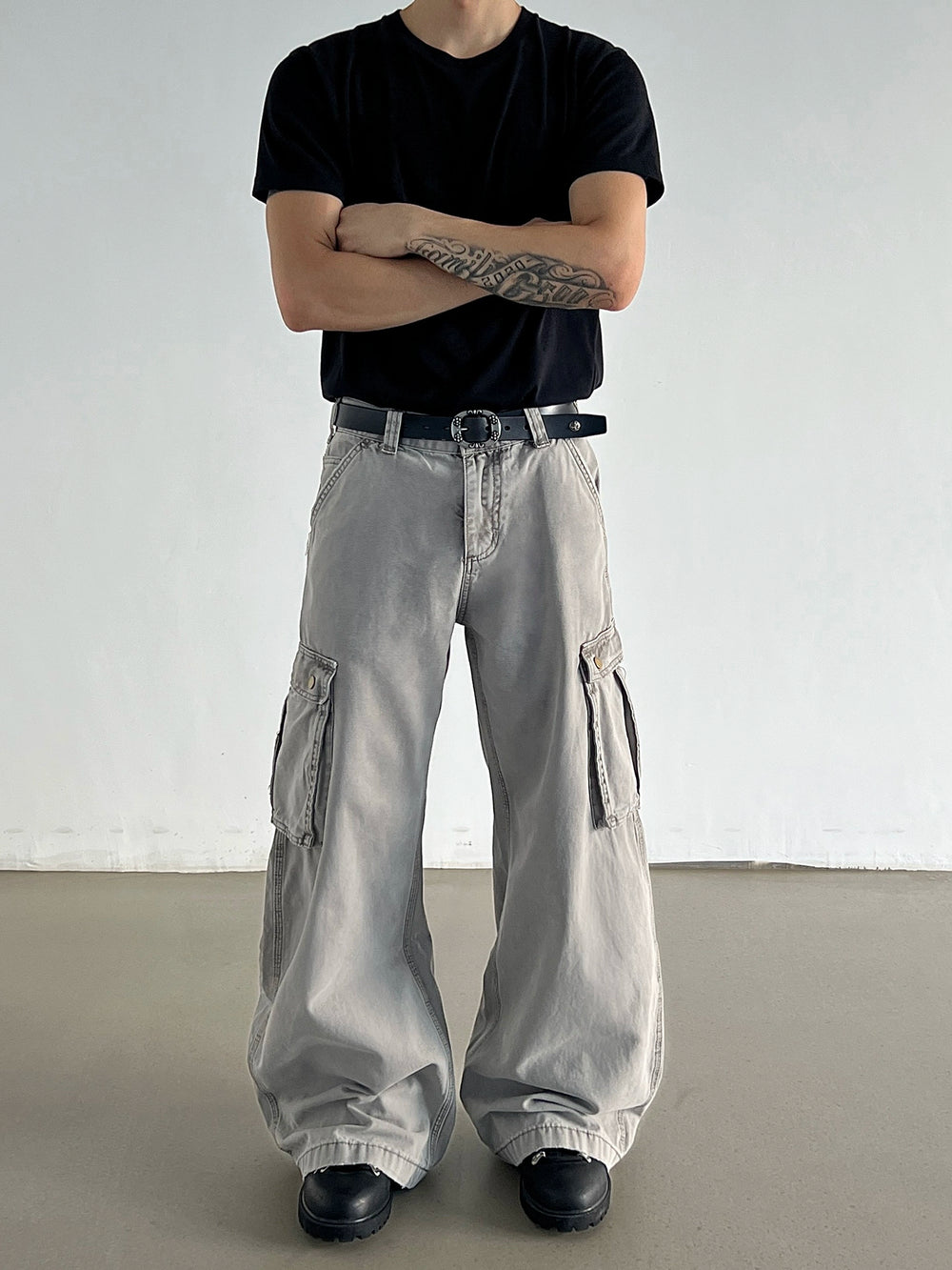 Distressed Wide-Leg Multi-Pocket Cargo Pants