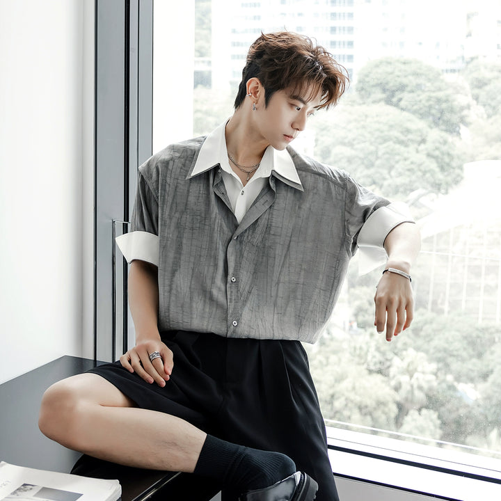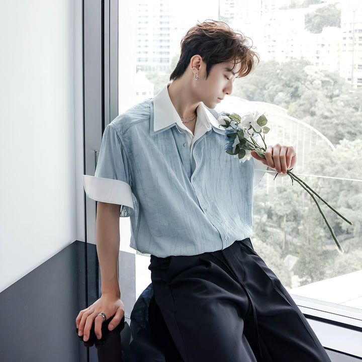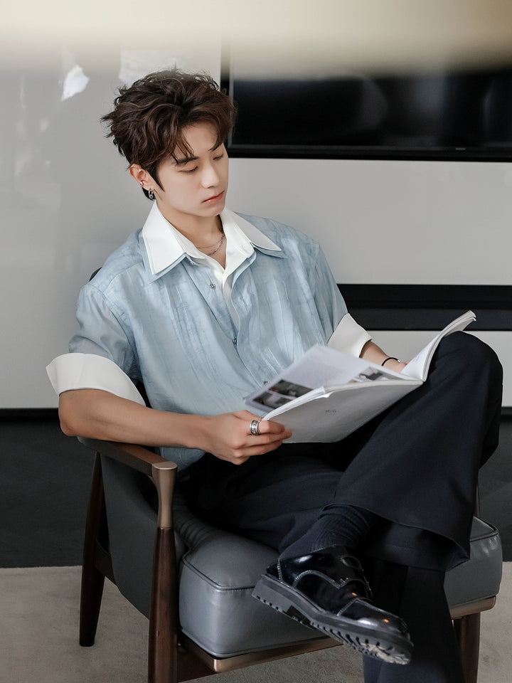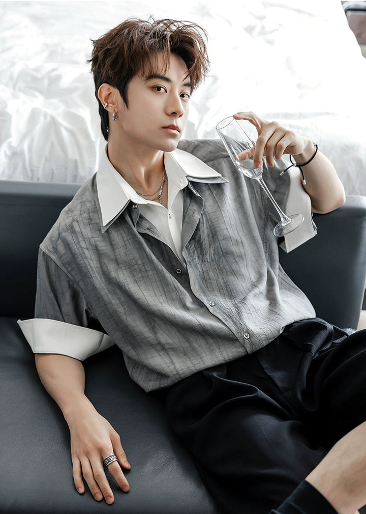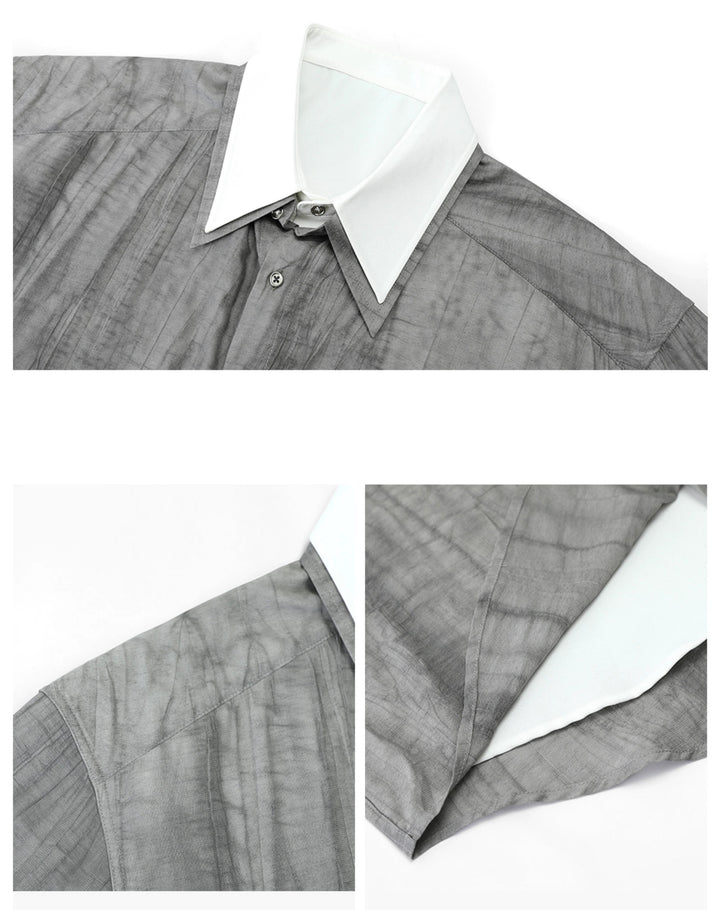 Ink Texture Patchwork Rolled Sleeves Shirt