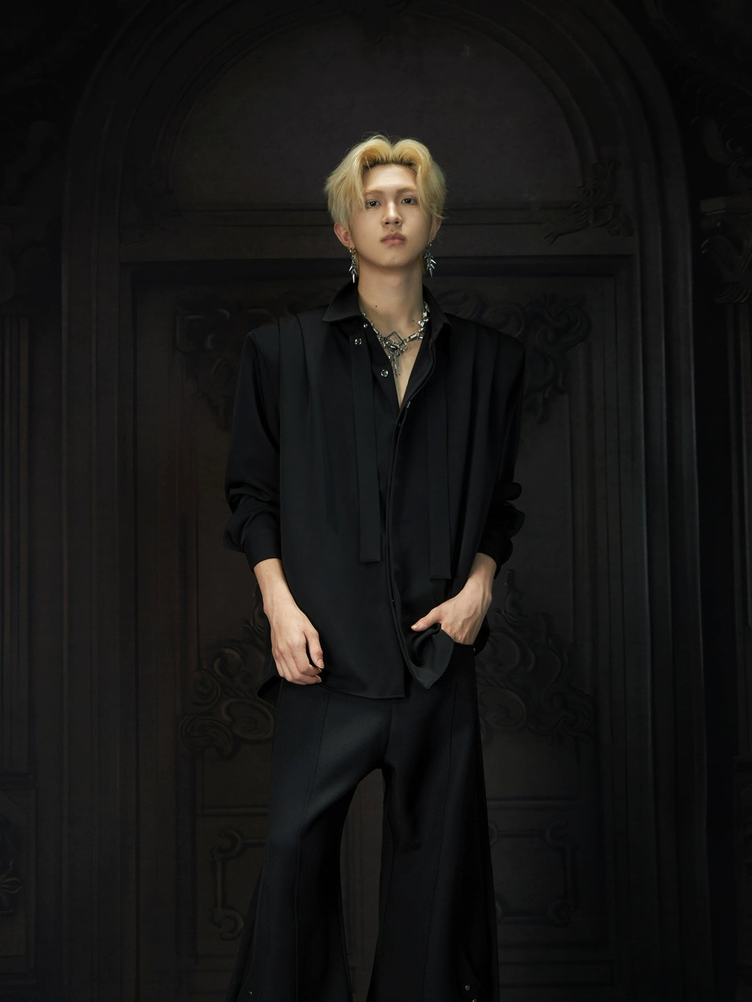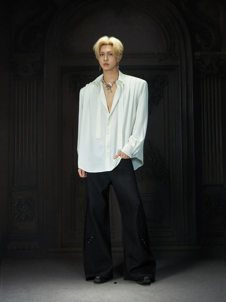 Loose Fit Ribbon Detail Long-Sleeve Shirt