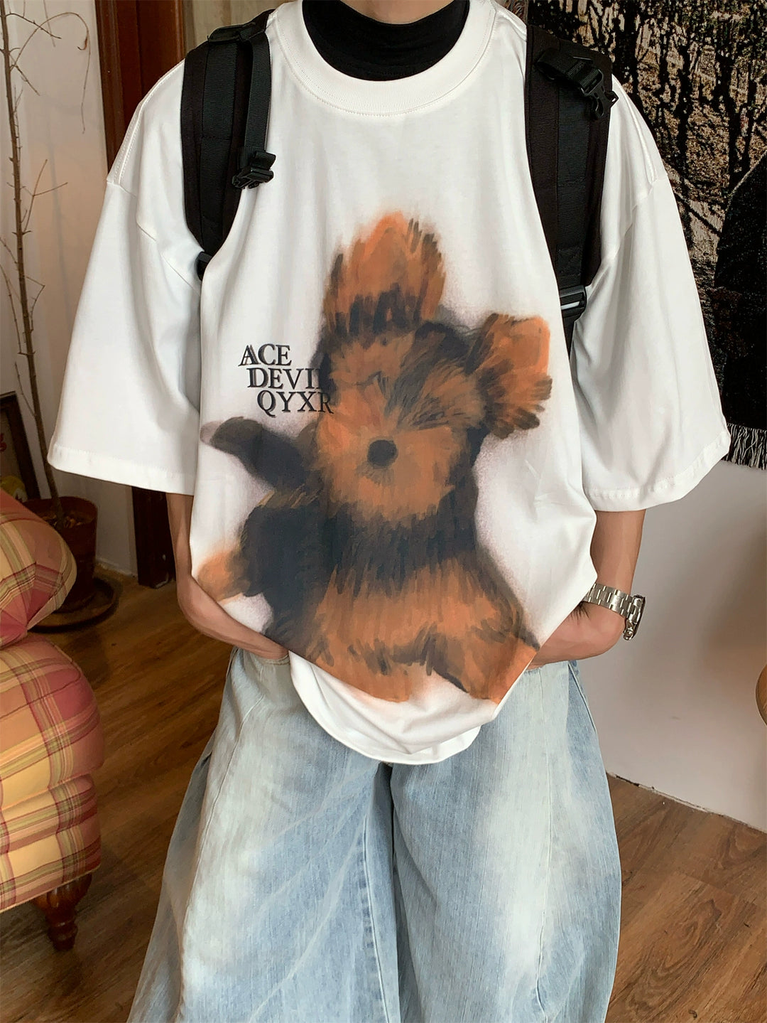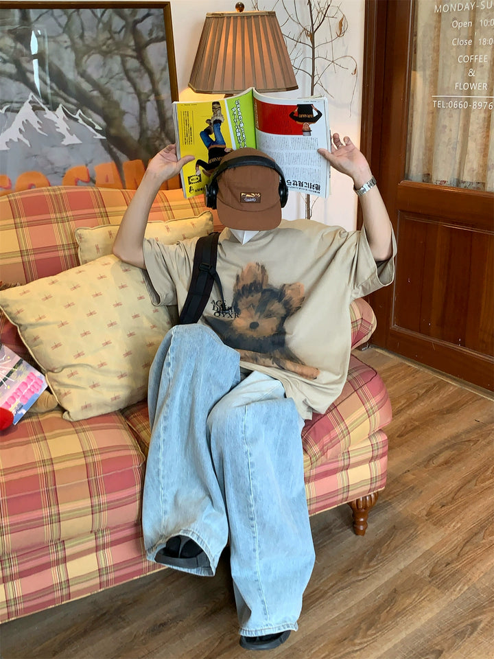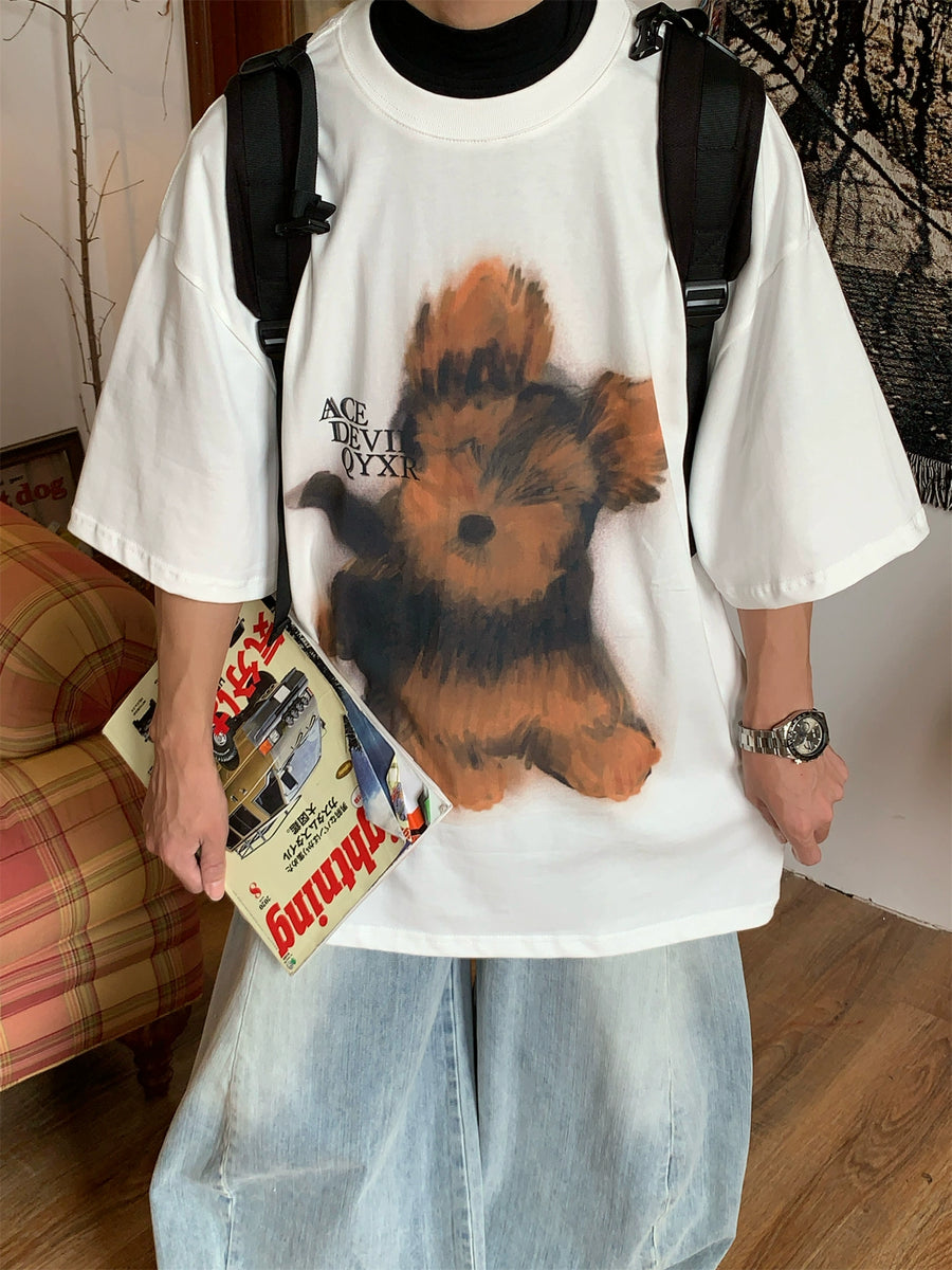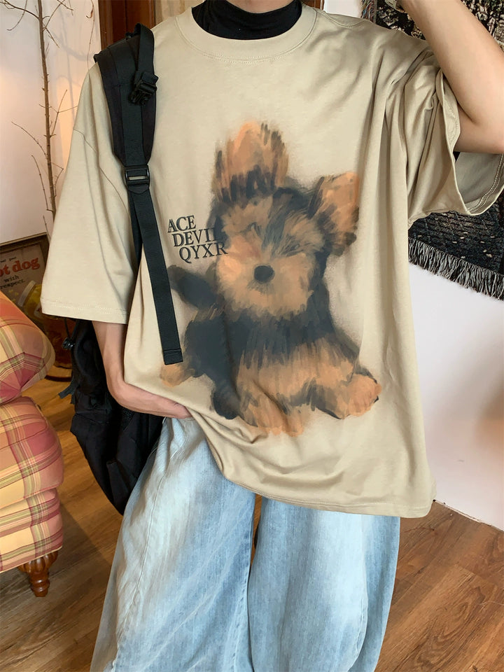 Puppy Print Loose Fit Turtleneck Shirt
