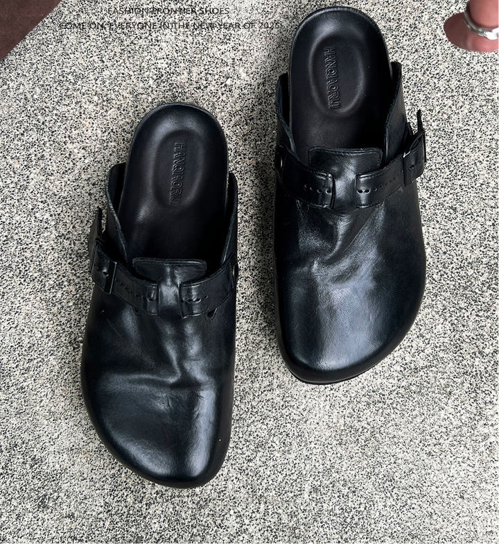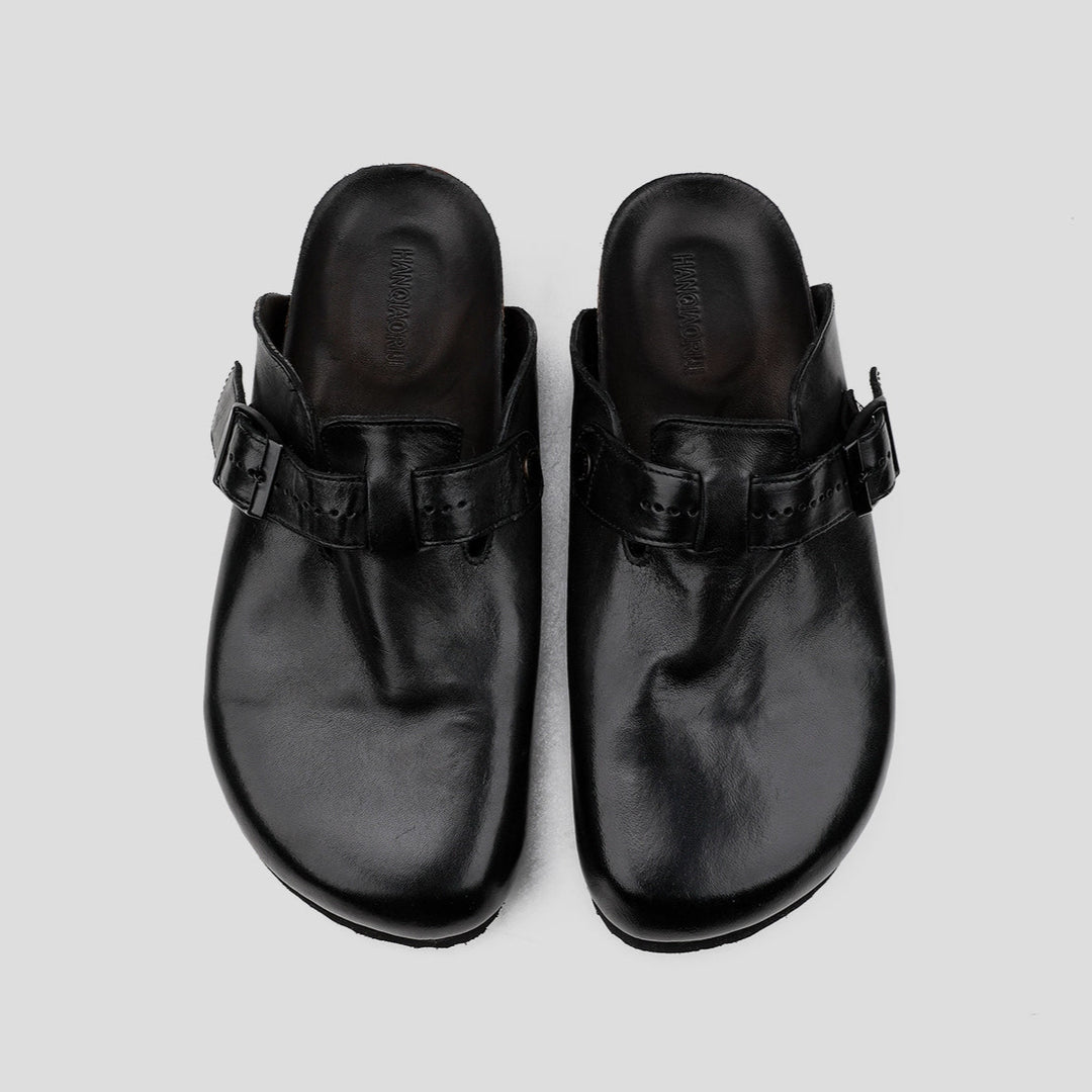 Washed Leather Closed-Toe Mule Clogs