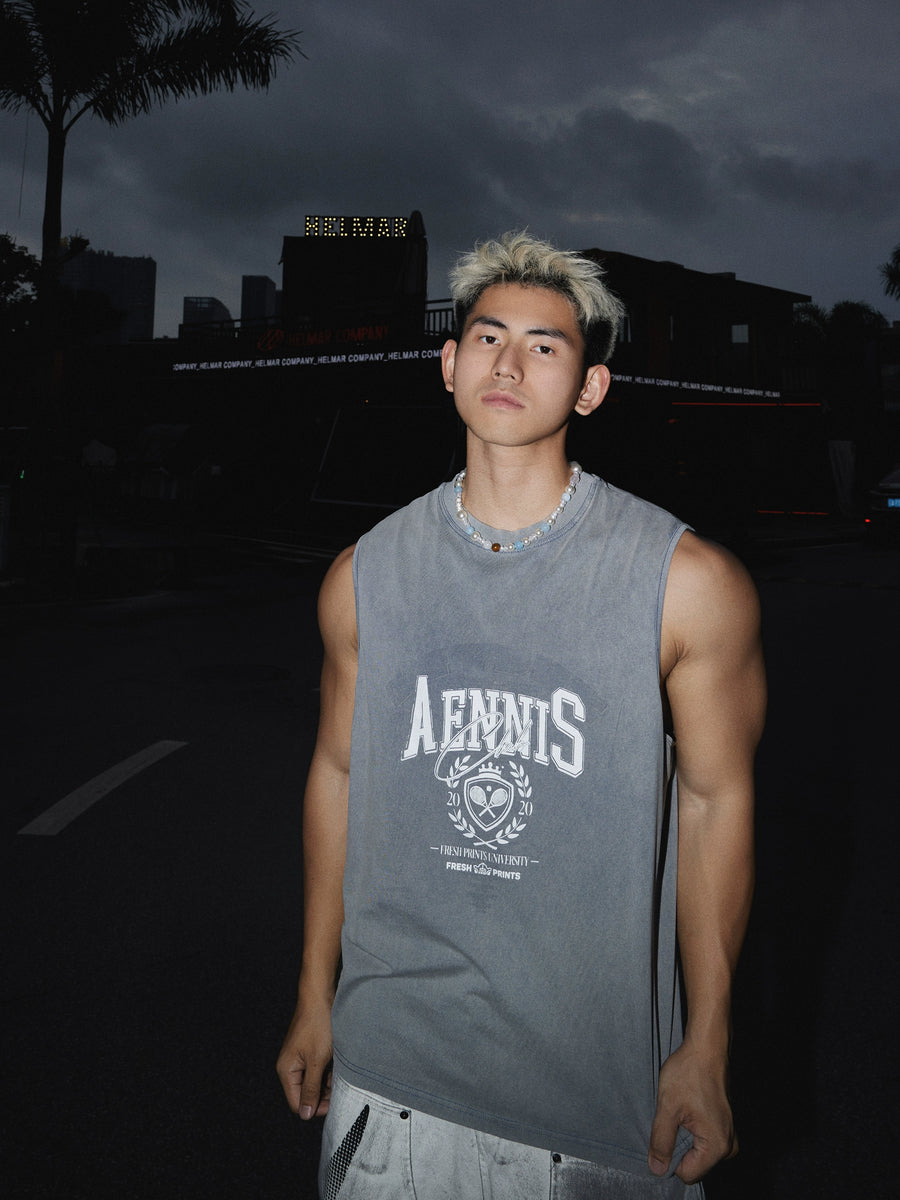Tennis Academy Distressed Sleeveless Tank Top