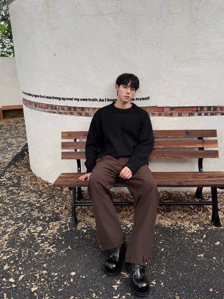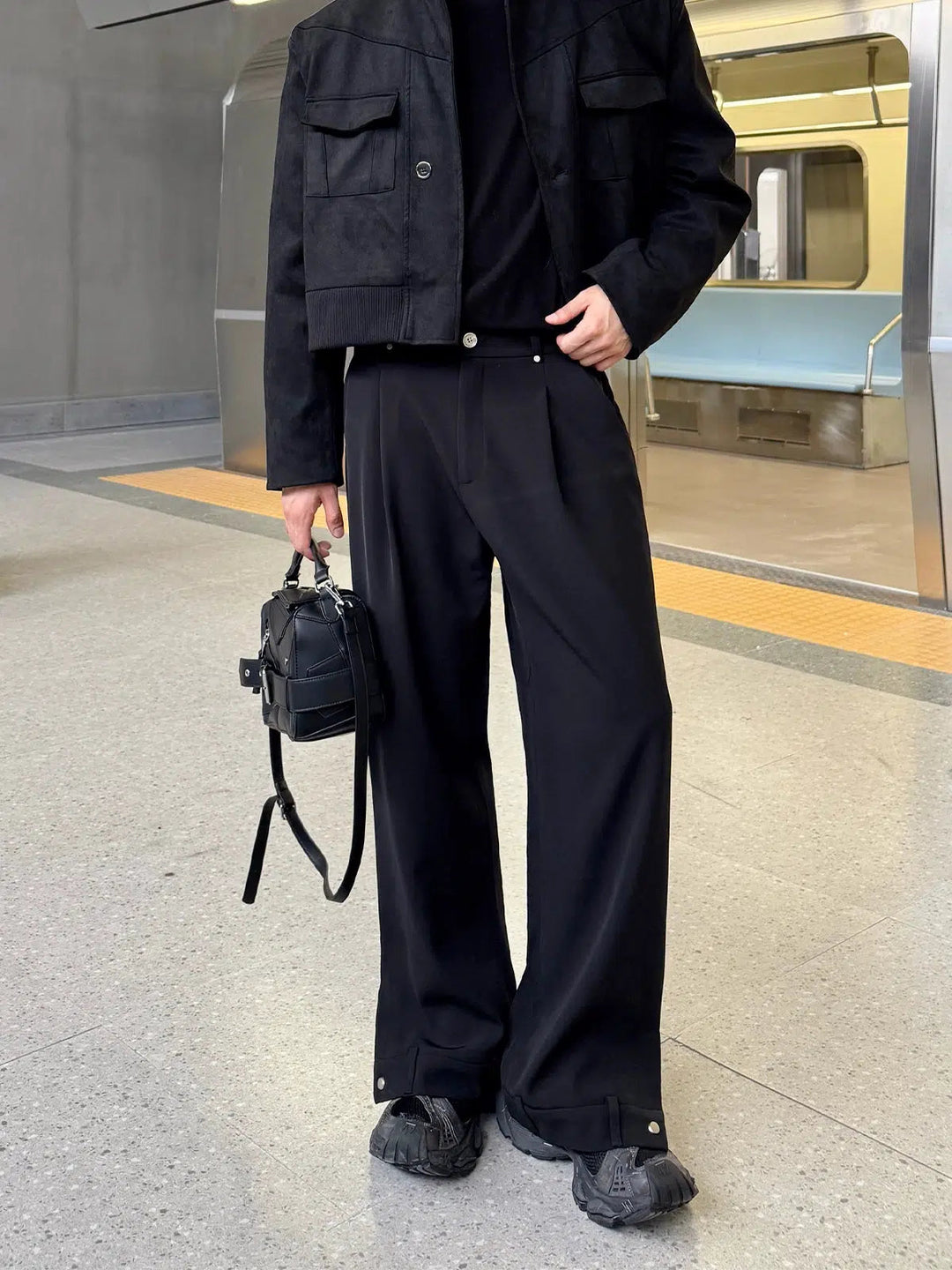 Elastic Waistband Wide-Leg Pleated Pants