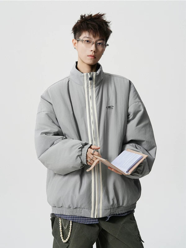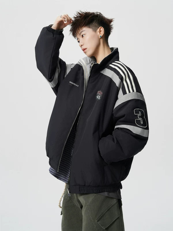 Striped Stand Collar Padded Varsity Jacket