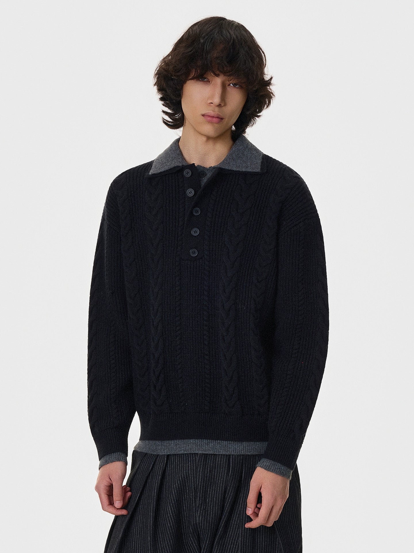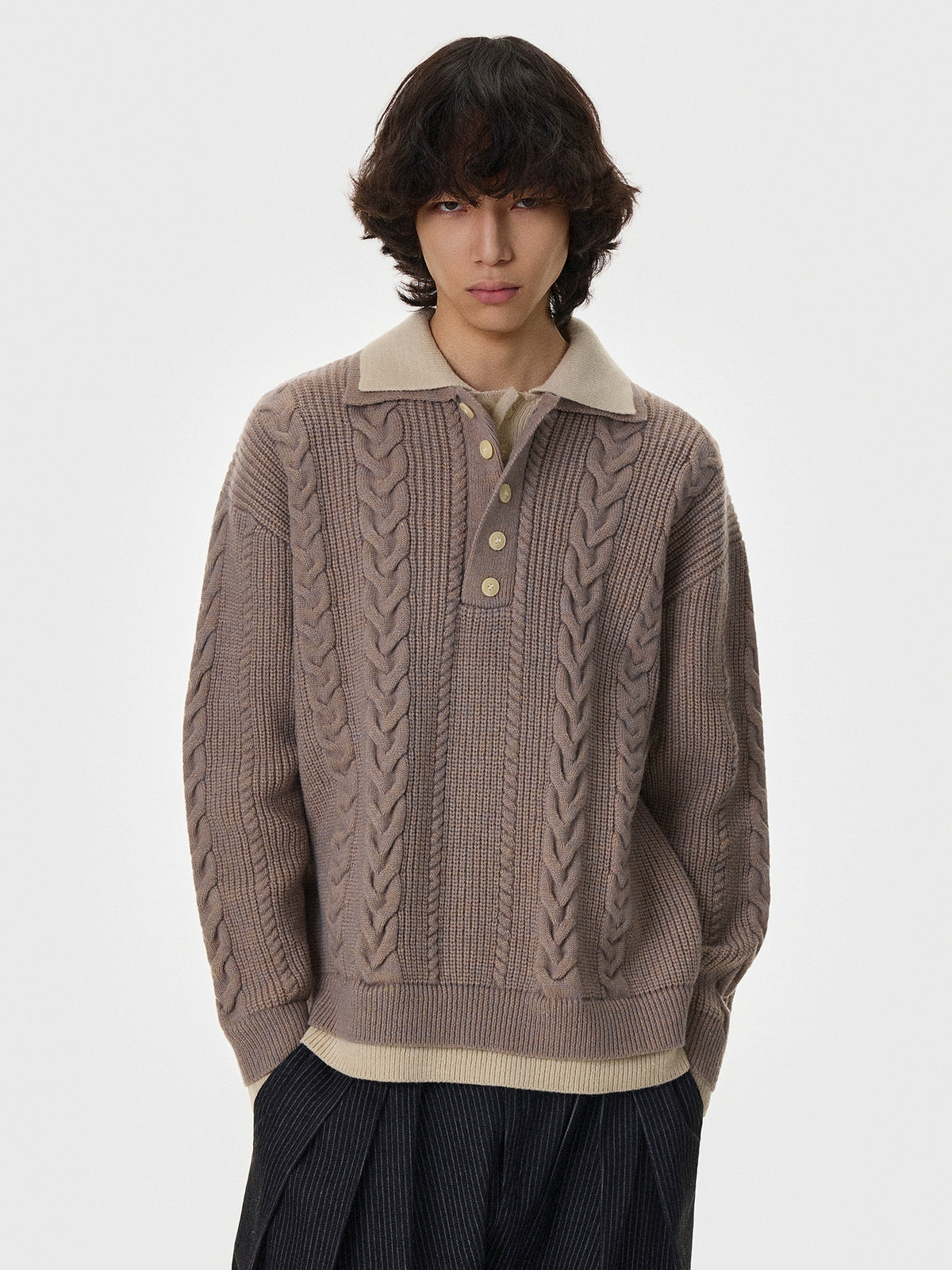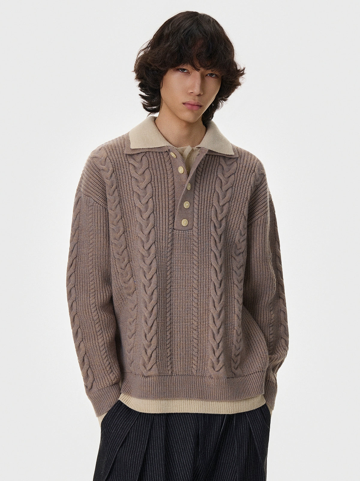 Cable Knit Double-Layer Lapel Cardigan
