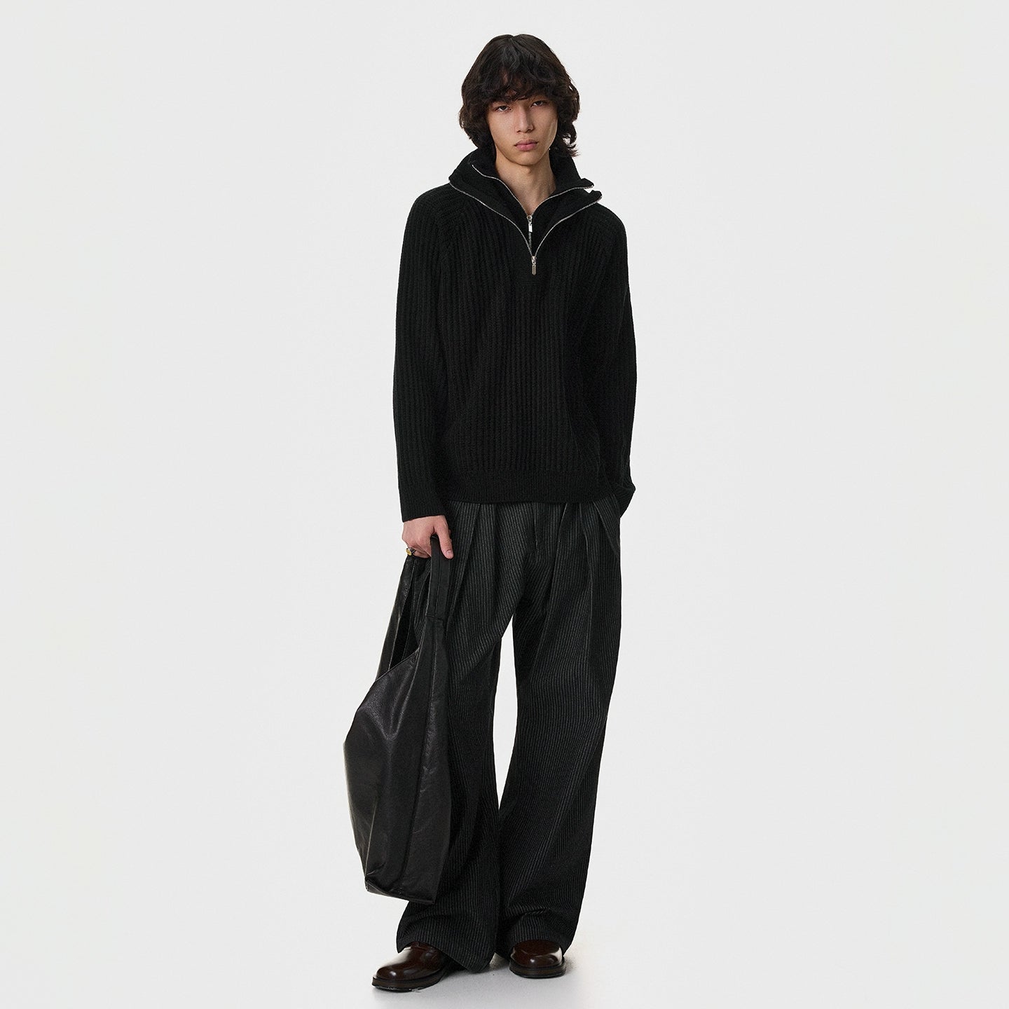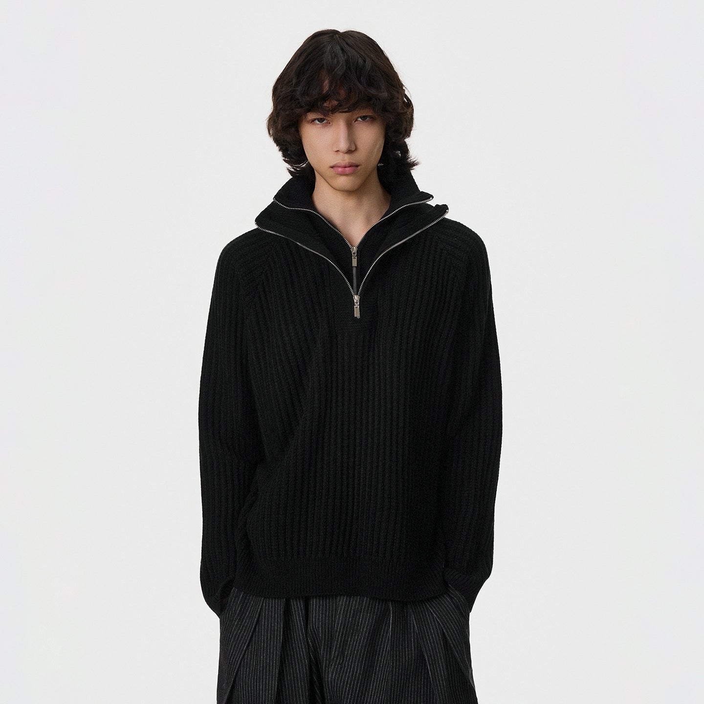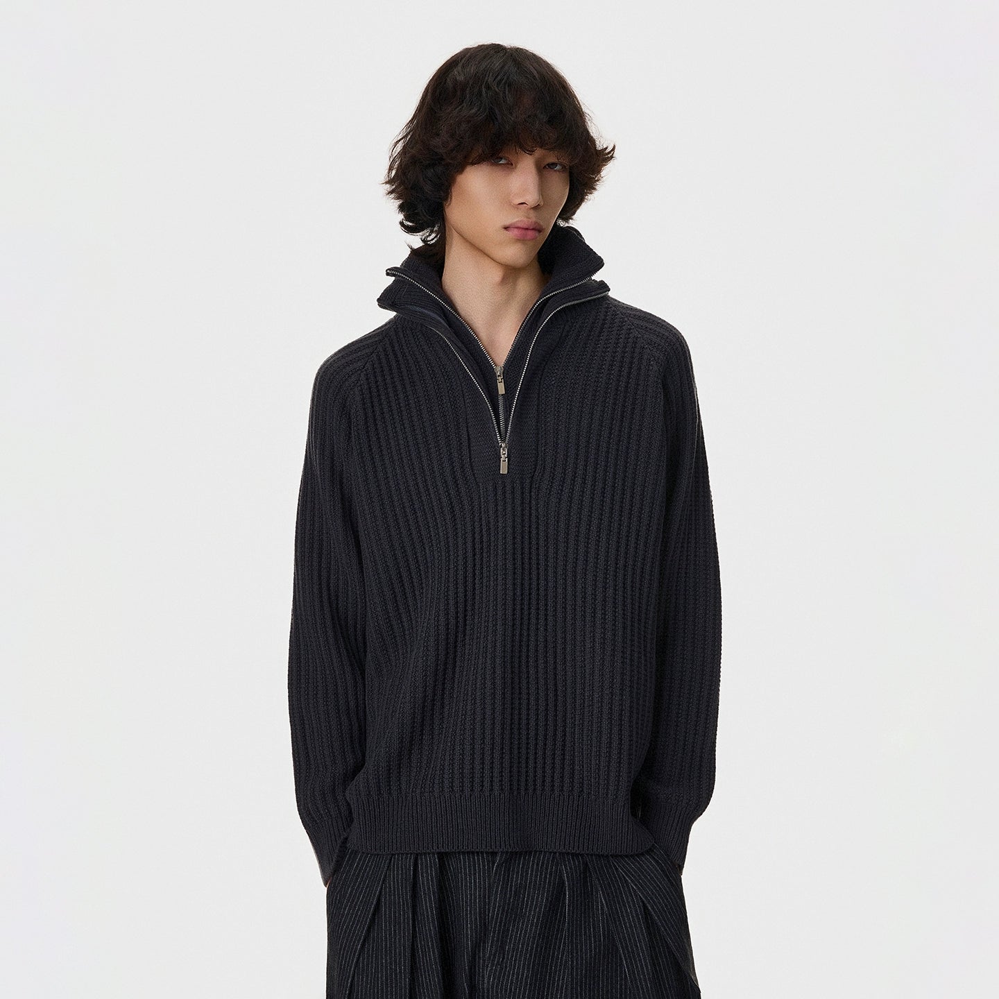 Half-Zip Ribbed Knit Turtleneck Sweater