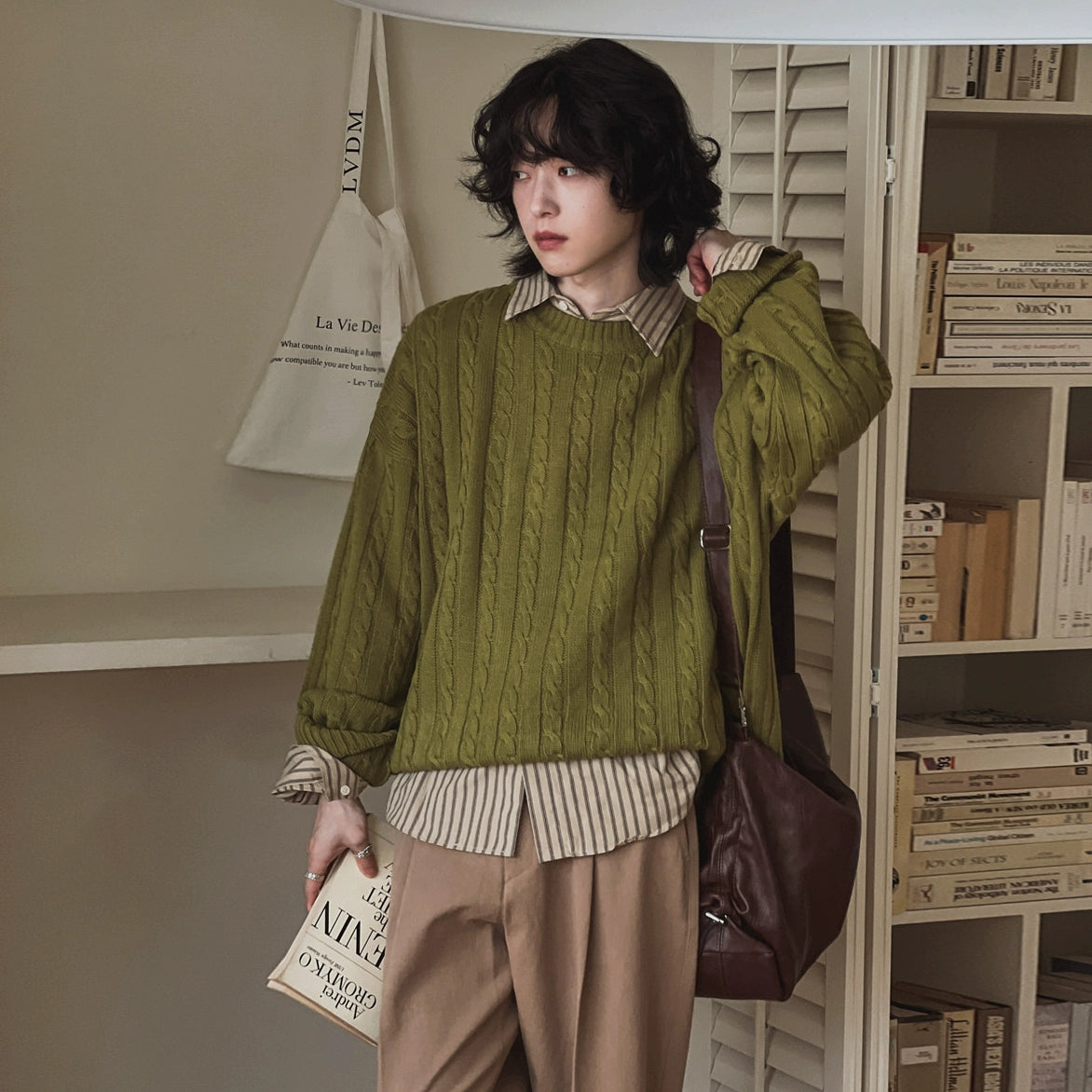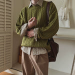 Twisted Knit Round Neck Sweater