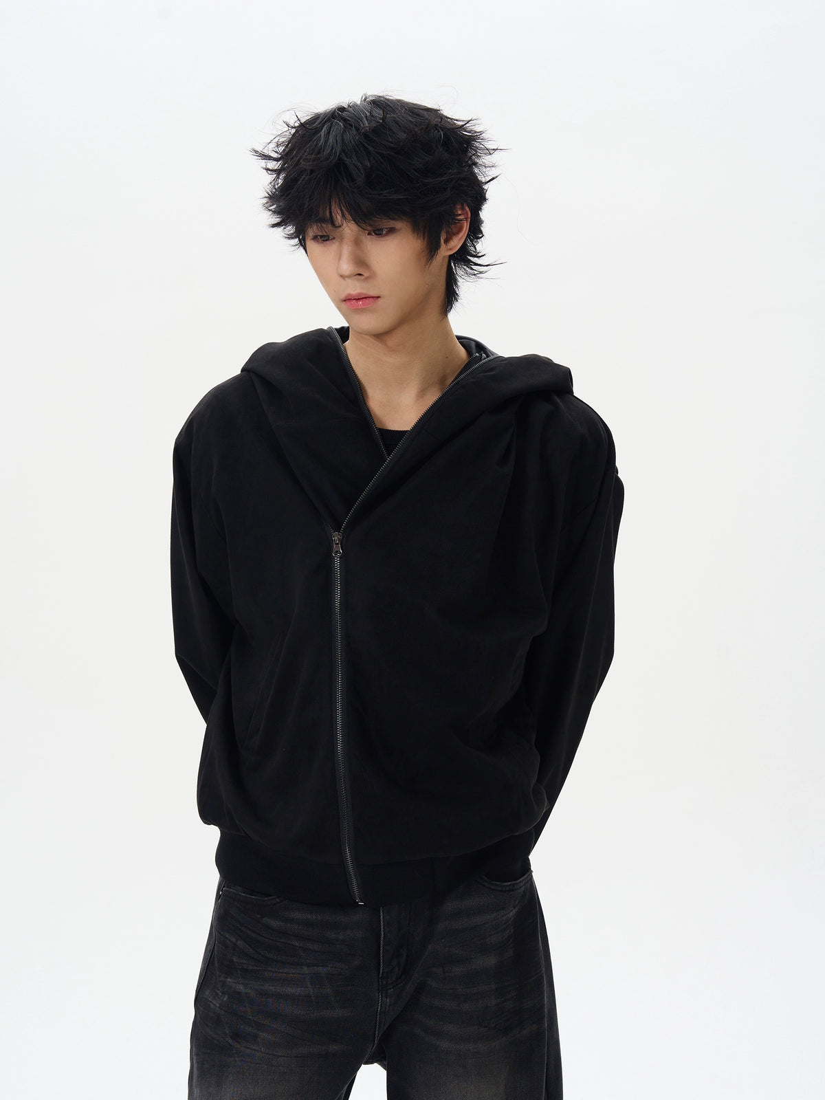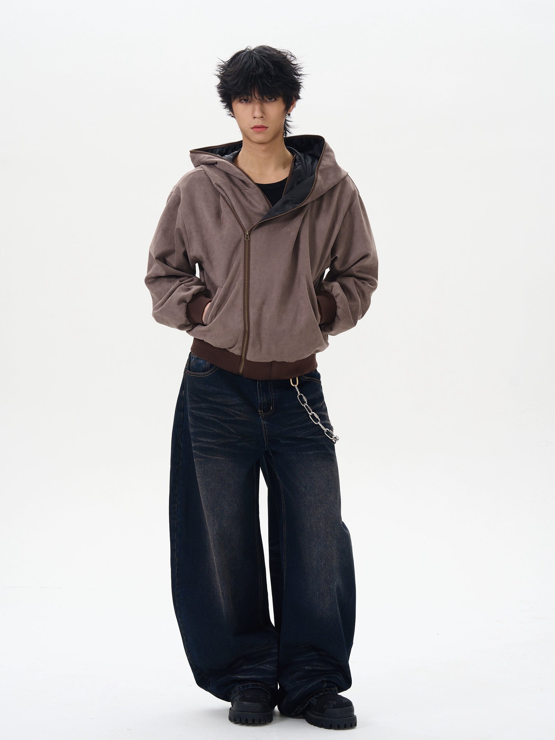 Suede Asymmetric Zip Hoodie Jacket