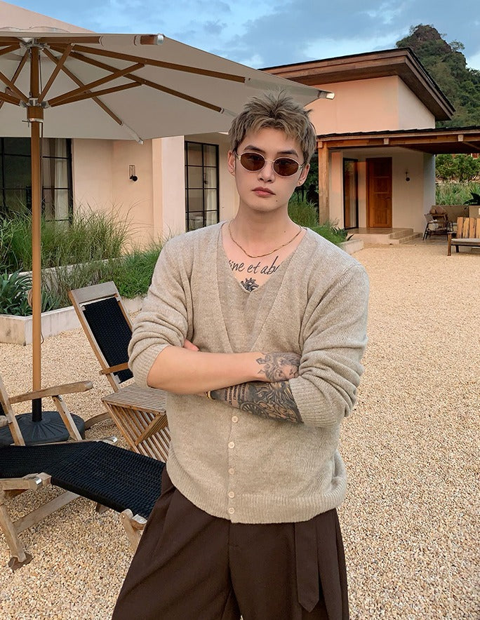 V-Neck Wool Knit Cardigan