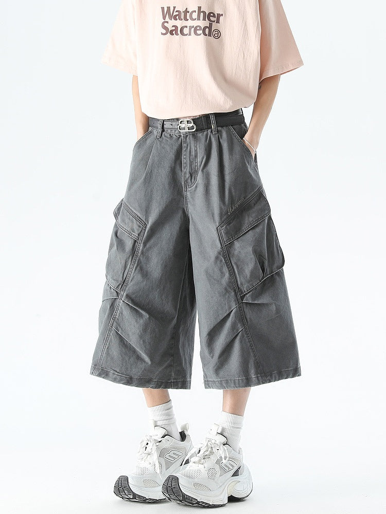 Pleated Cropped Cargo Pants