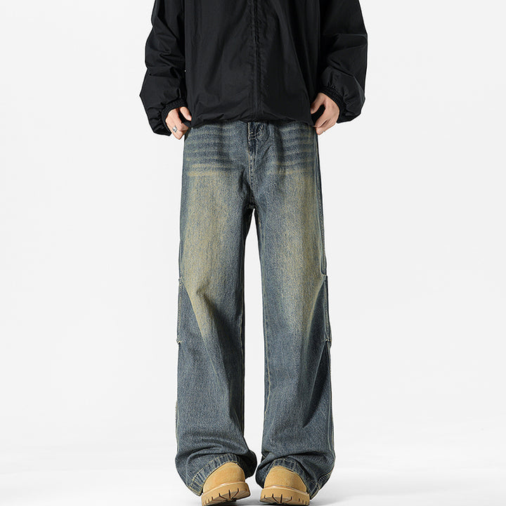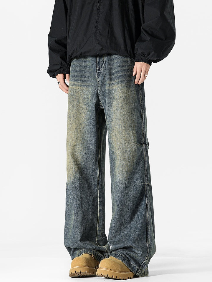 Wide-Leg Washed Denim Pants