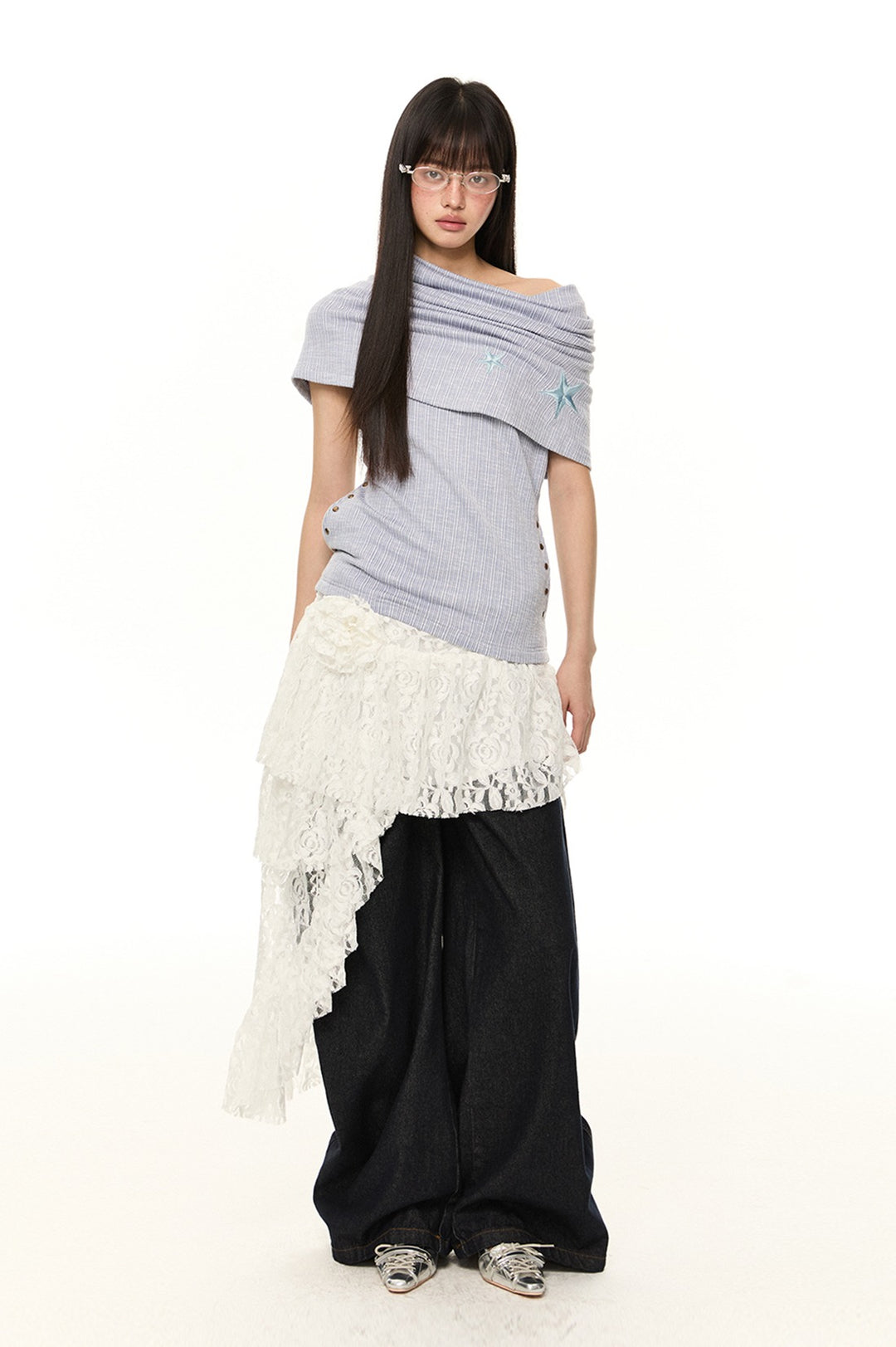 Off Shoulder Ribbed Knit Short Sleeve Top