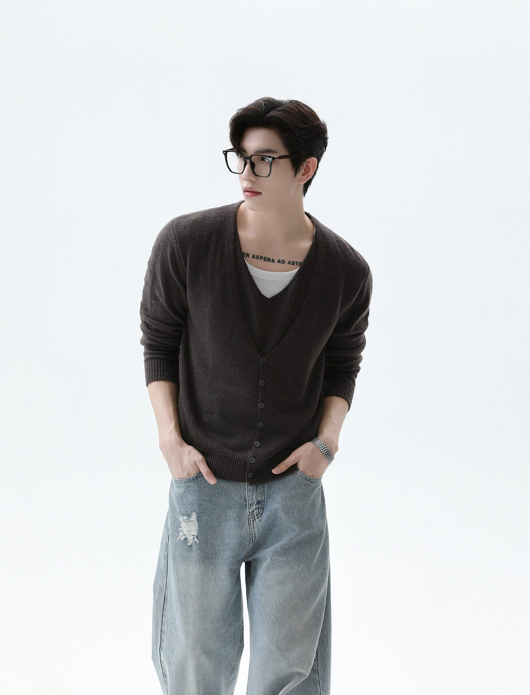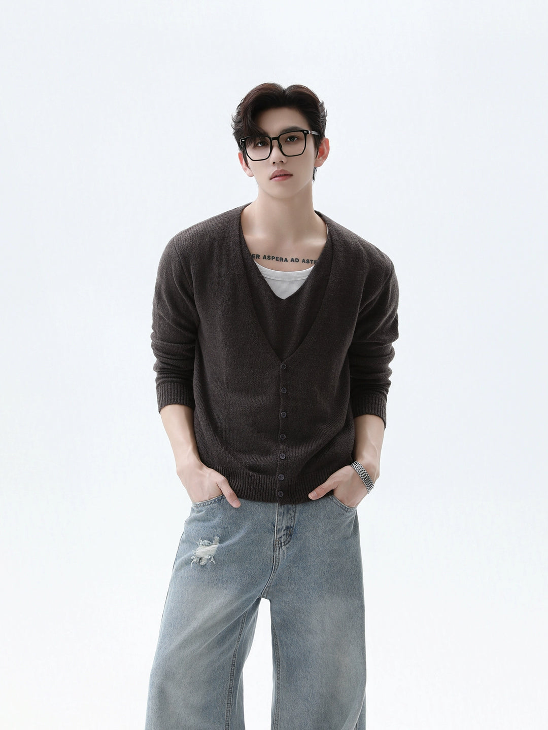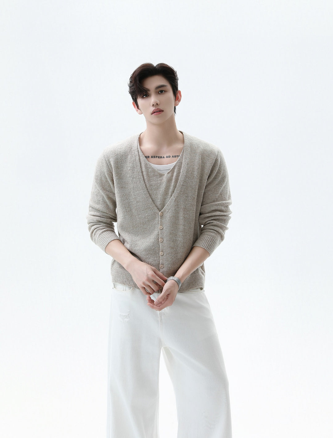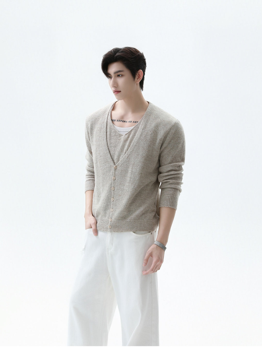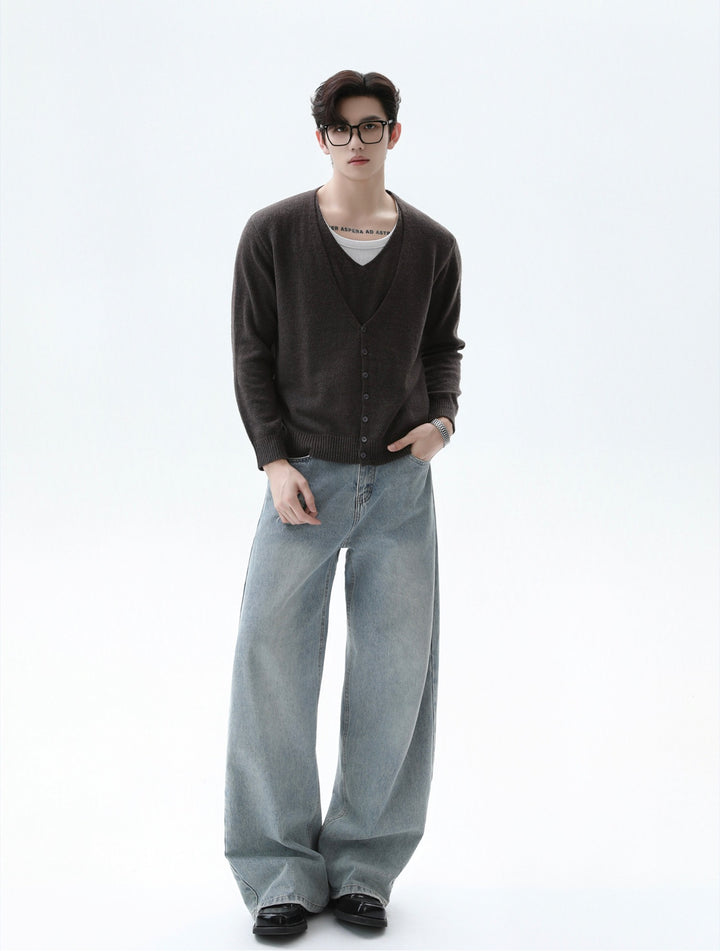 V-neck Wool Knit Cardigan Sweater