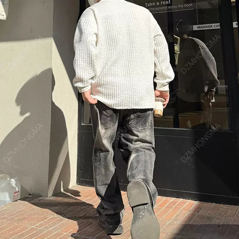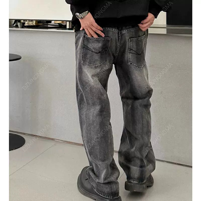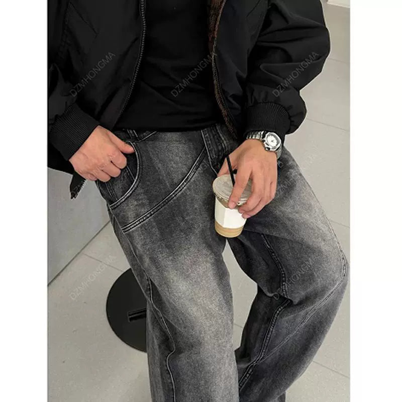 Loose Fit Diagonal Stitch Denim Pants