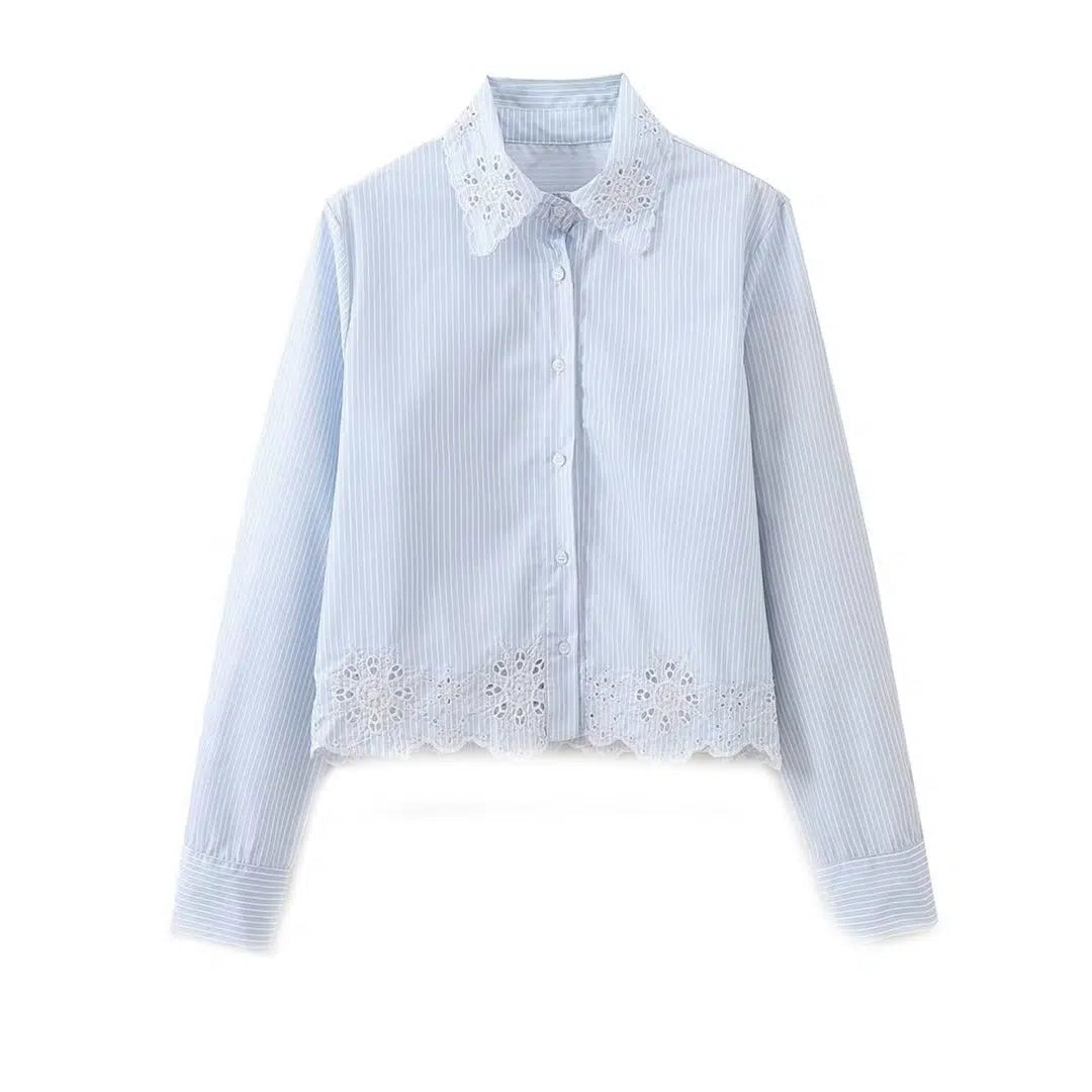 Embroidered Lace Collar Shirt