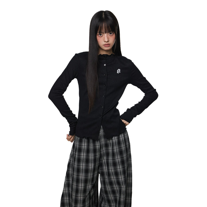 Embroidered Logo Pleated Long Sleeve Coat