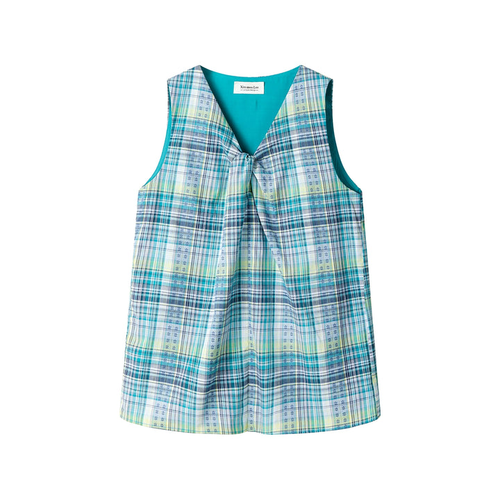 Plaid Sleeveless Vest Shirt with Twist