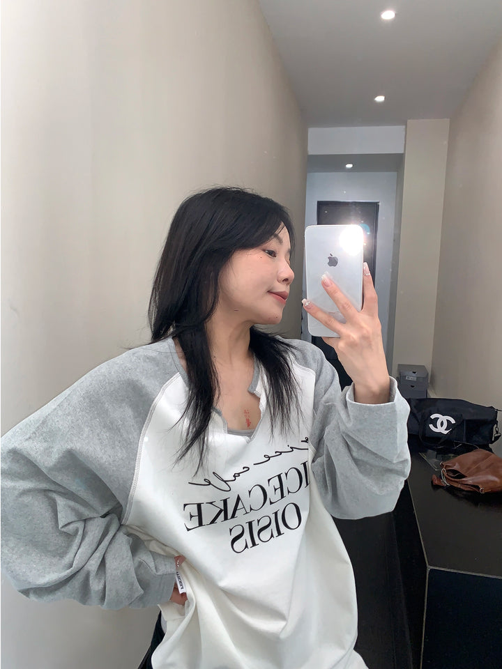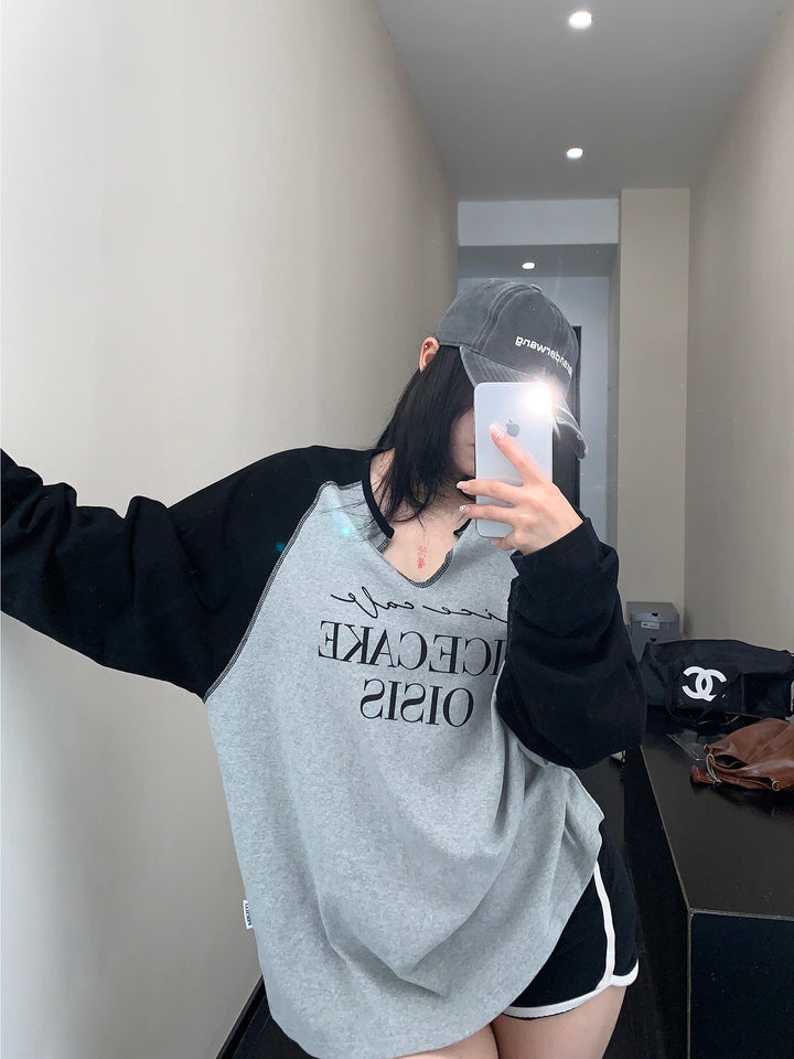 Raglan Sleeve V-Neck Sweatshirt