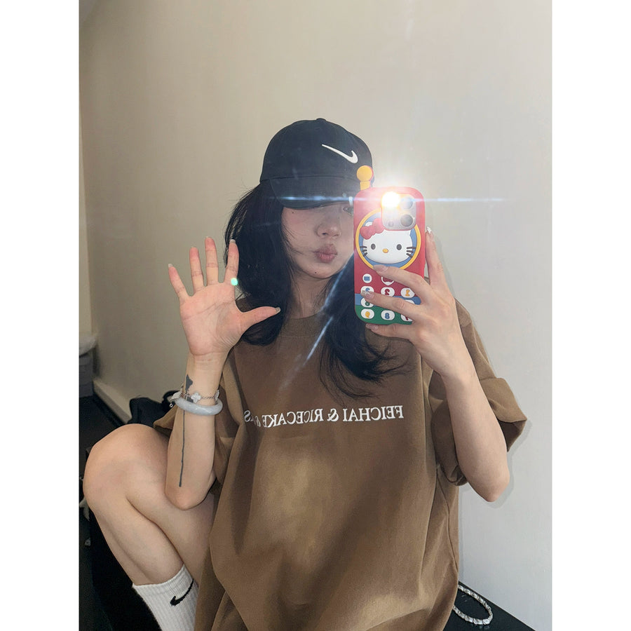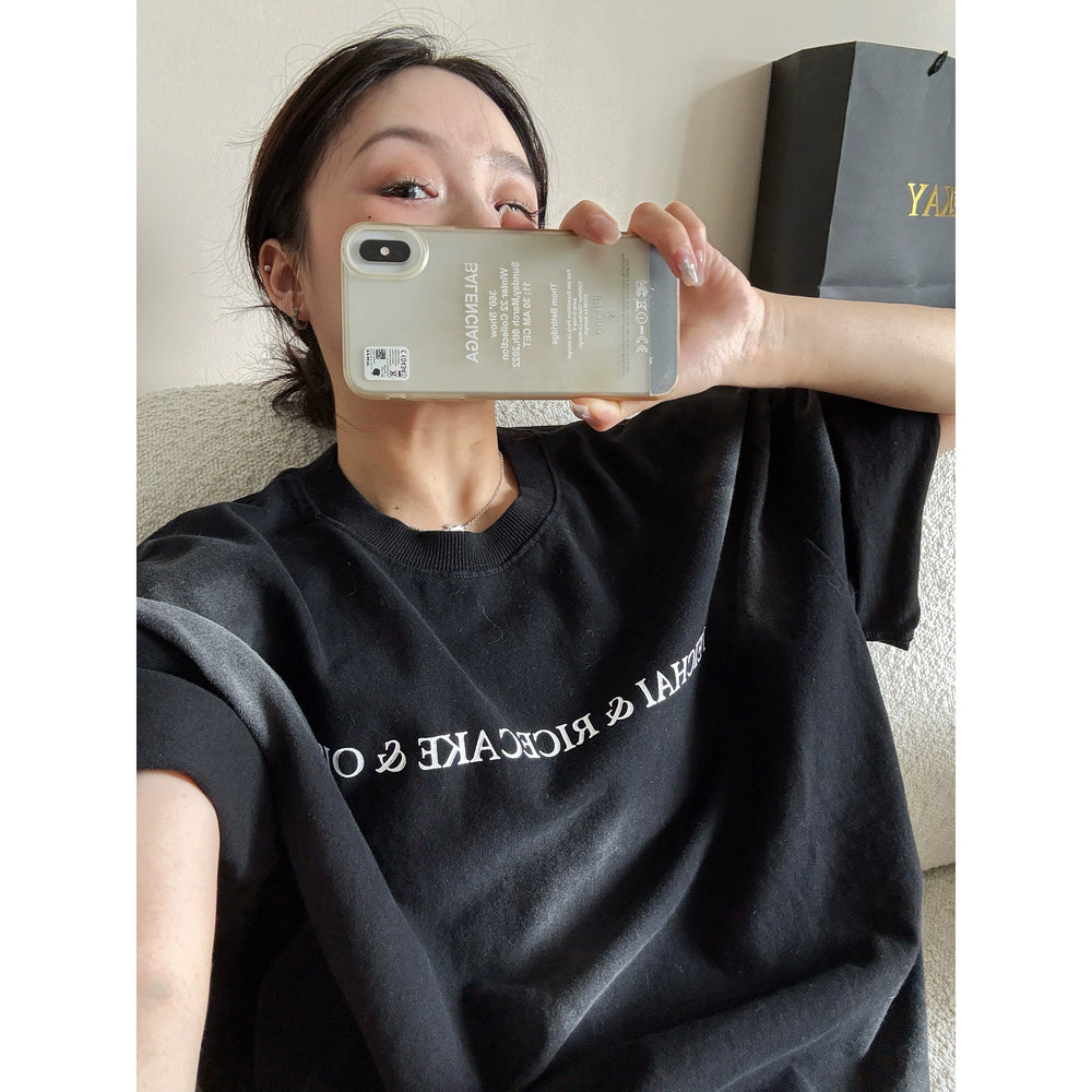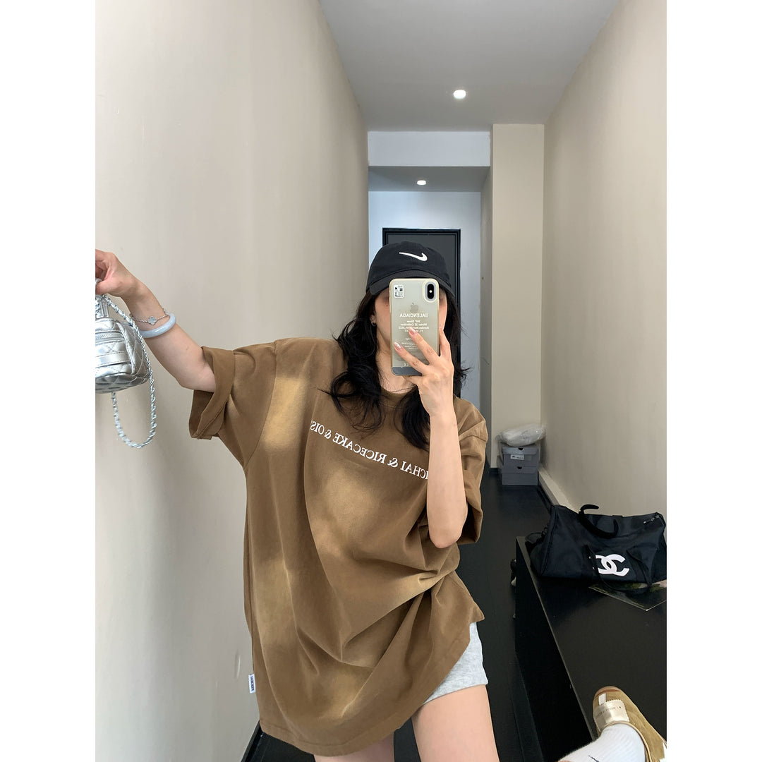 Retro Washed Cotton Letter Print T-Shirt