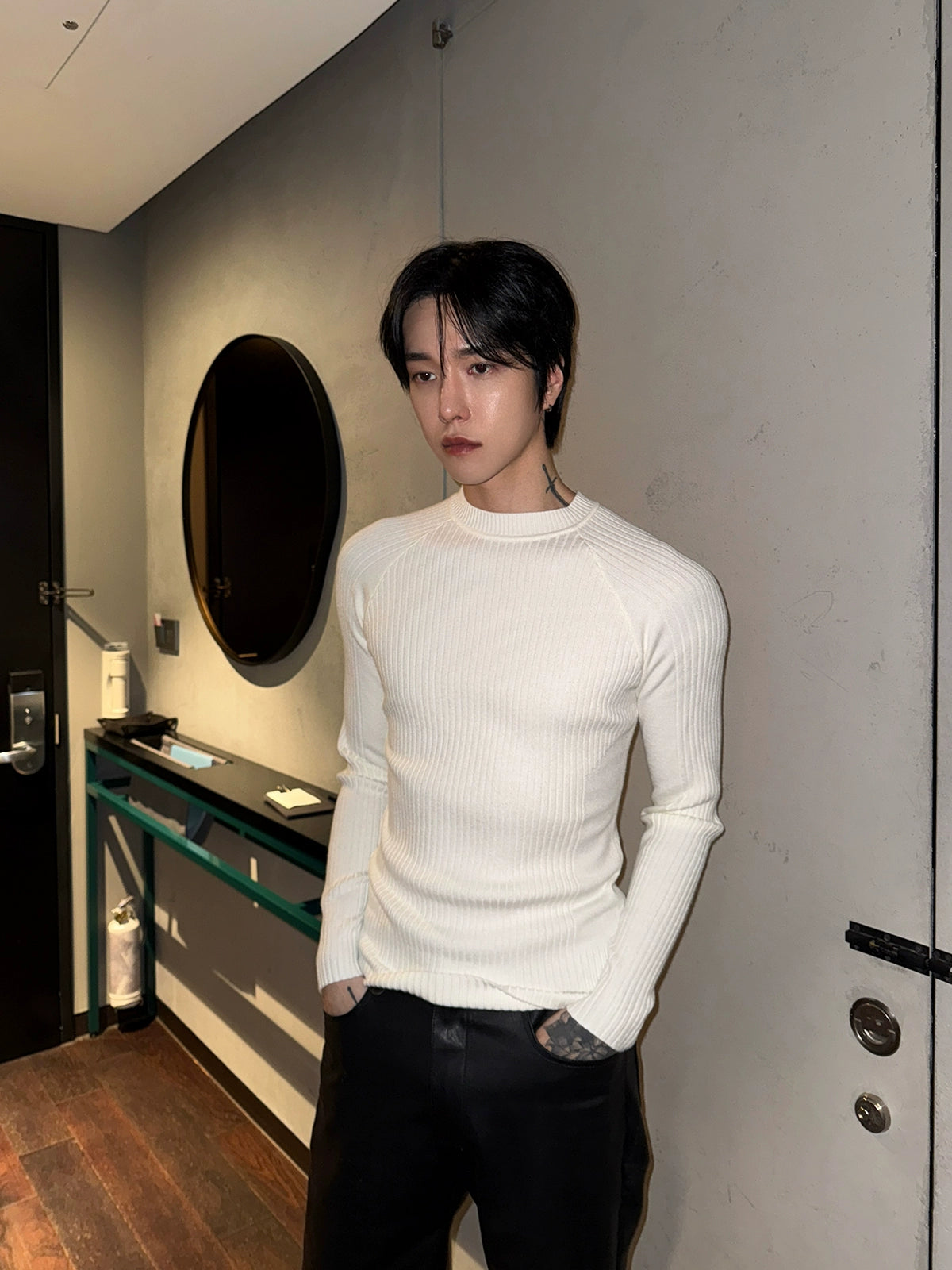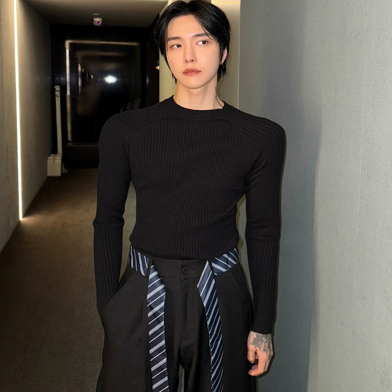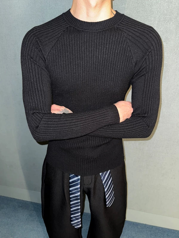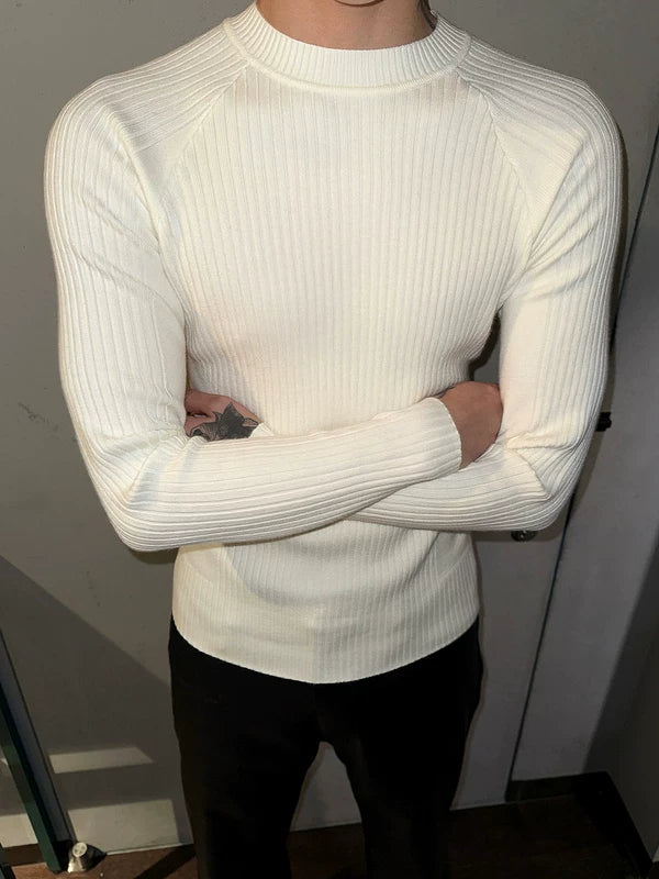 Slim Fit Ribbed Long Sleeve Knit Sweater