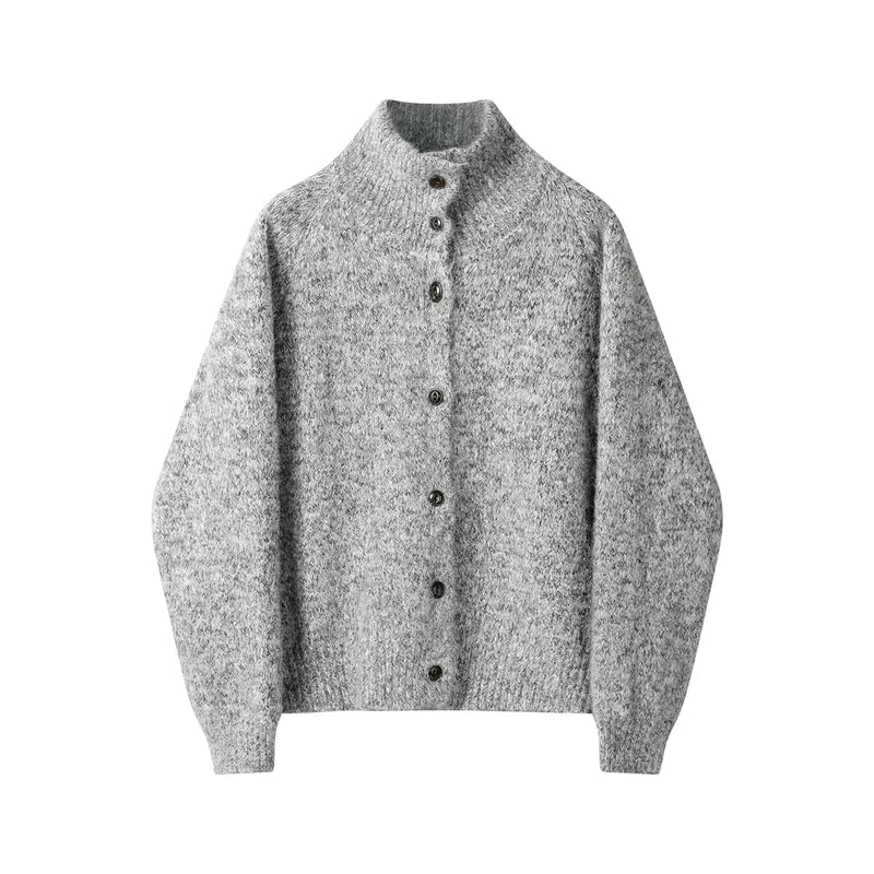 Stand Collar Knit Button-Up Sweater