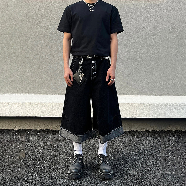 Cropped Denim Shorts with Button Design