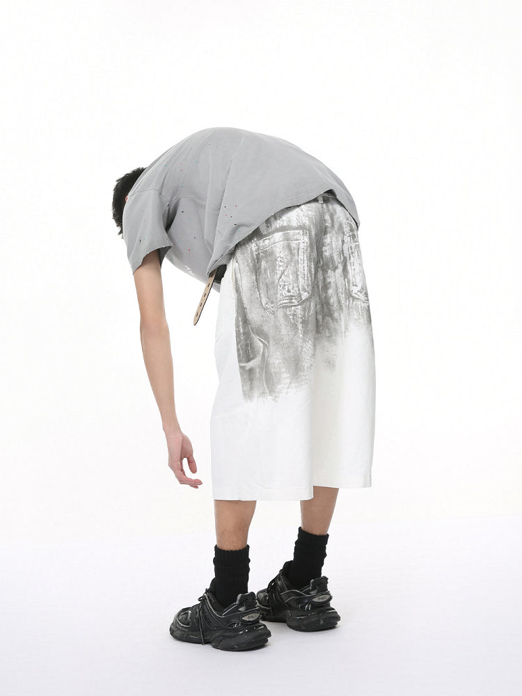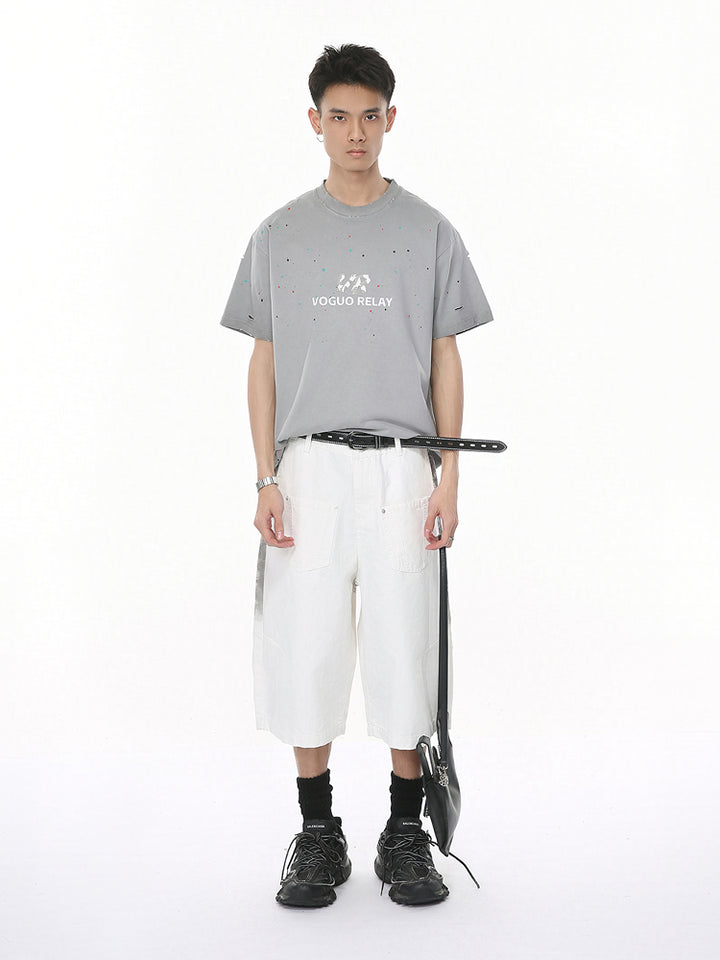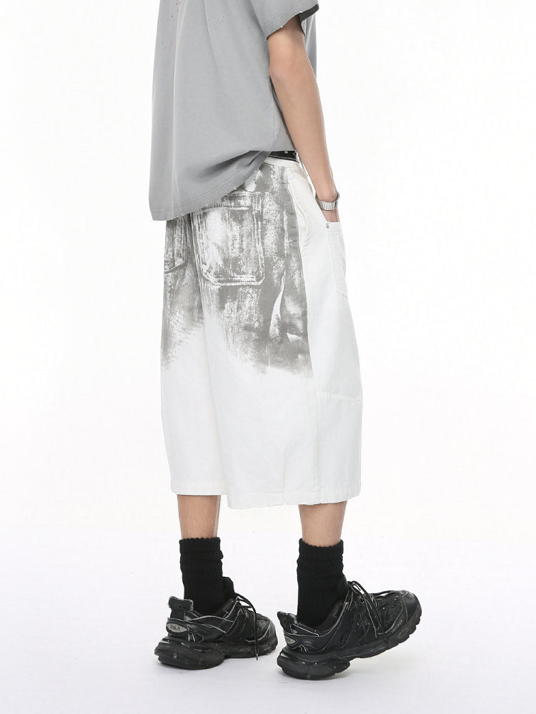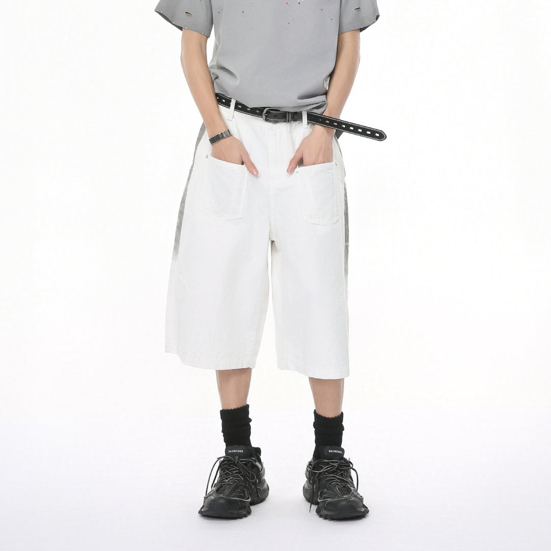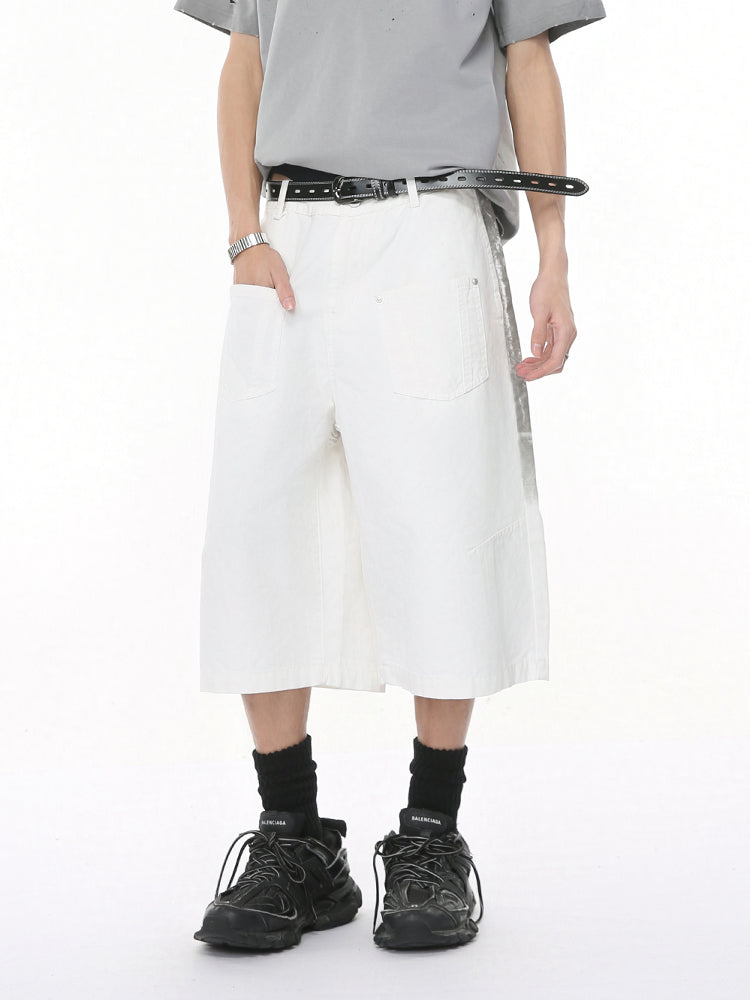 White Wide-Leg Cropped Denim Shorts
