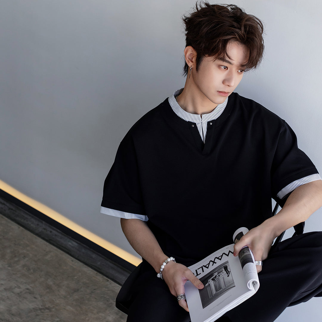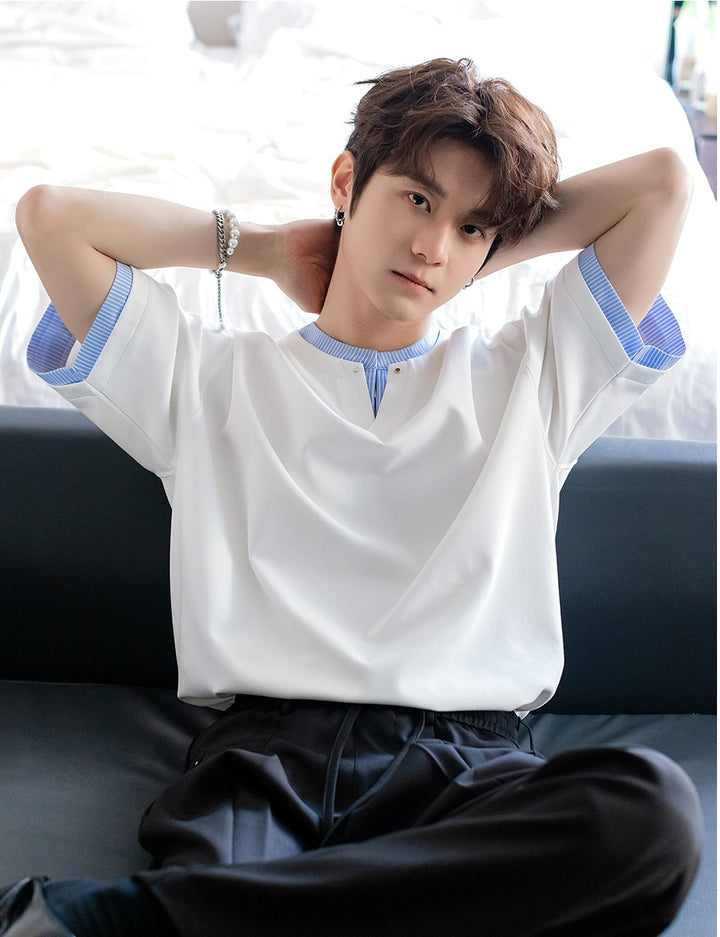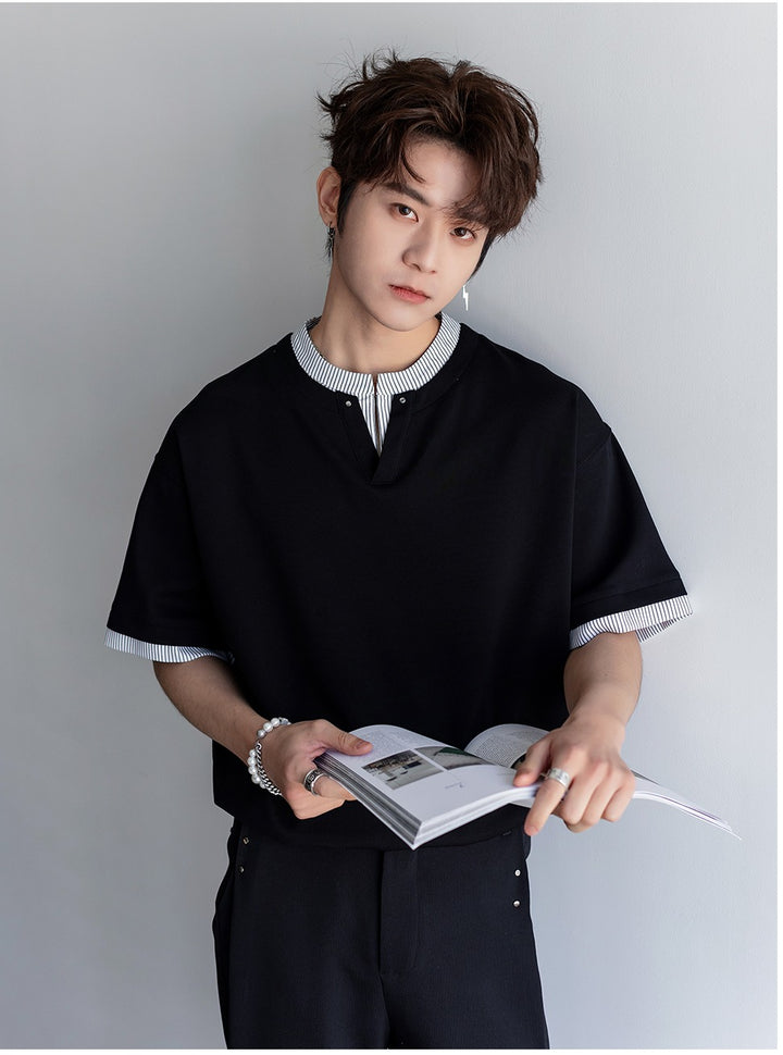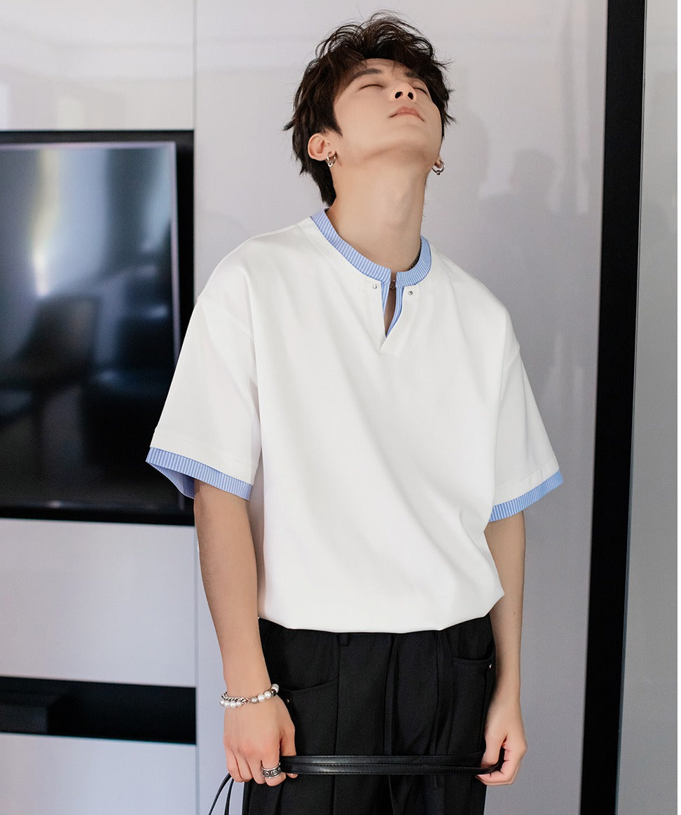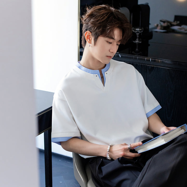 V-Neck Striped Short-Sleeve T-shirt