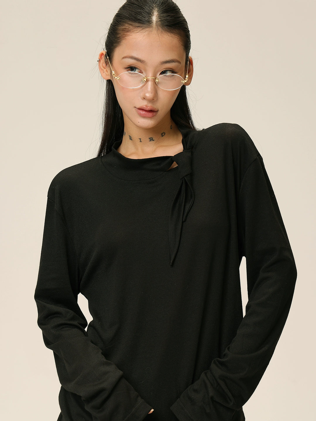 Long Sleeve Tie Neck Bottoming Shirt