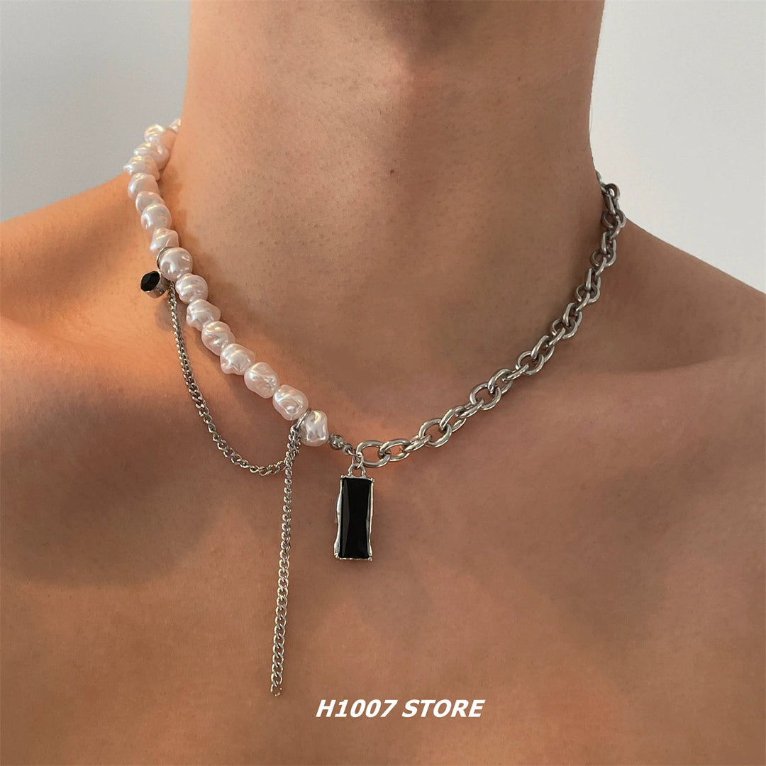 Titanium Steel Gem Pearl Necklace