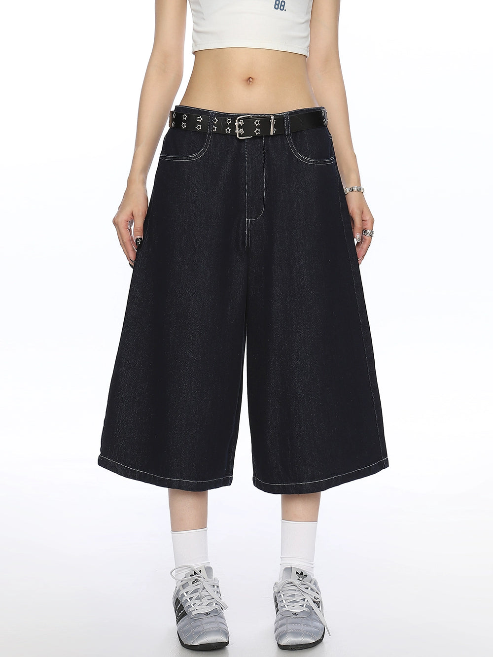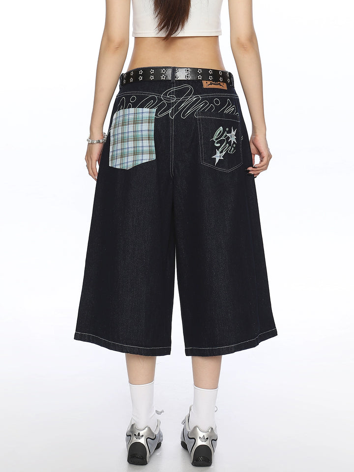 Embroidered Denim Cropped Pants