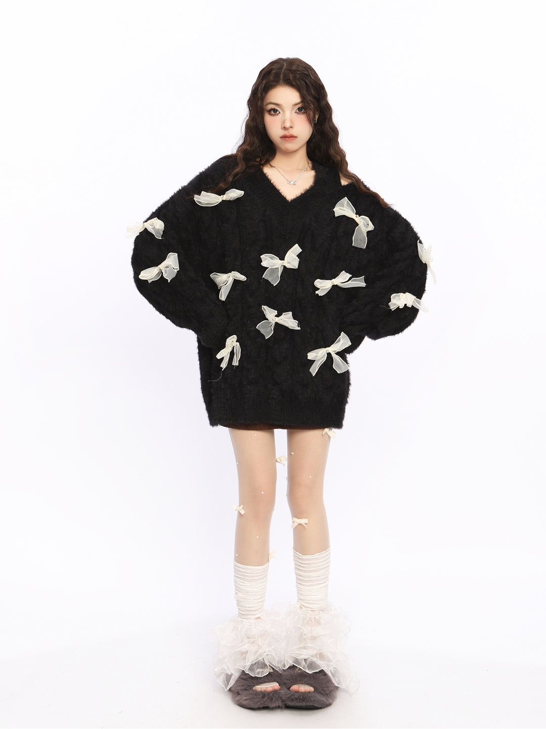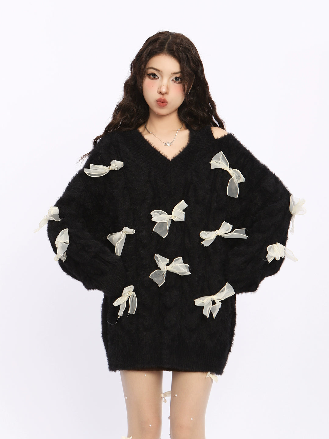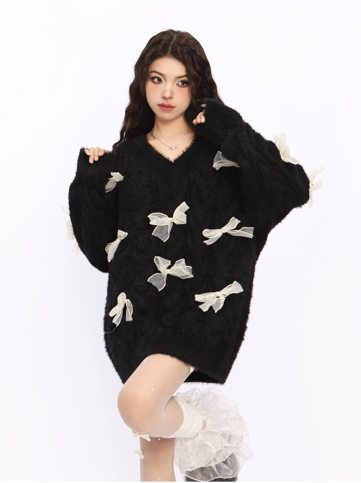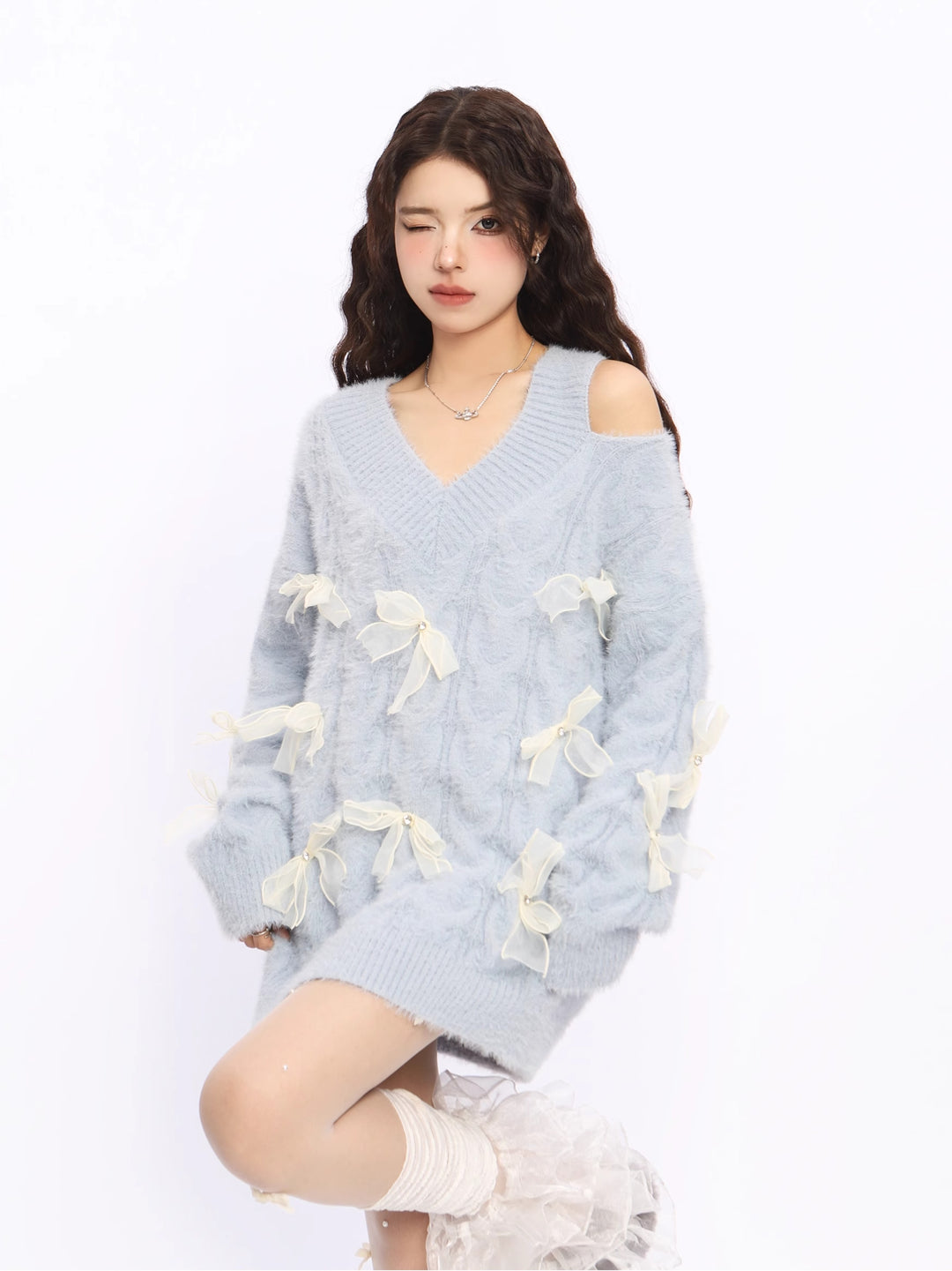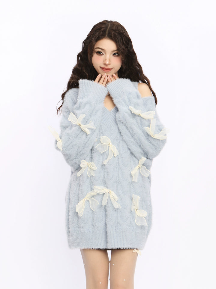 Bow Off-Shoulder Knit Sweater