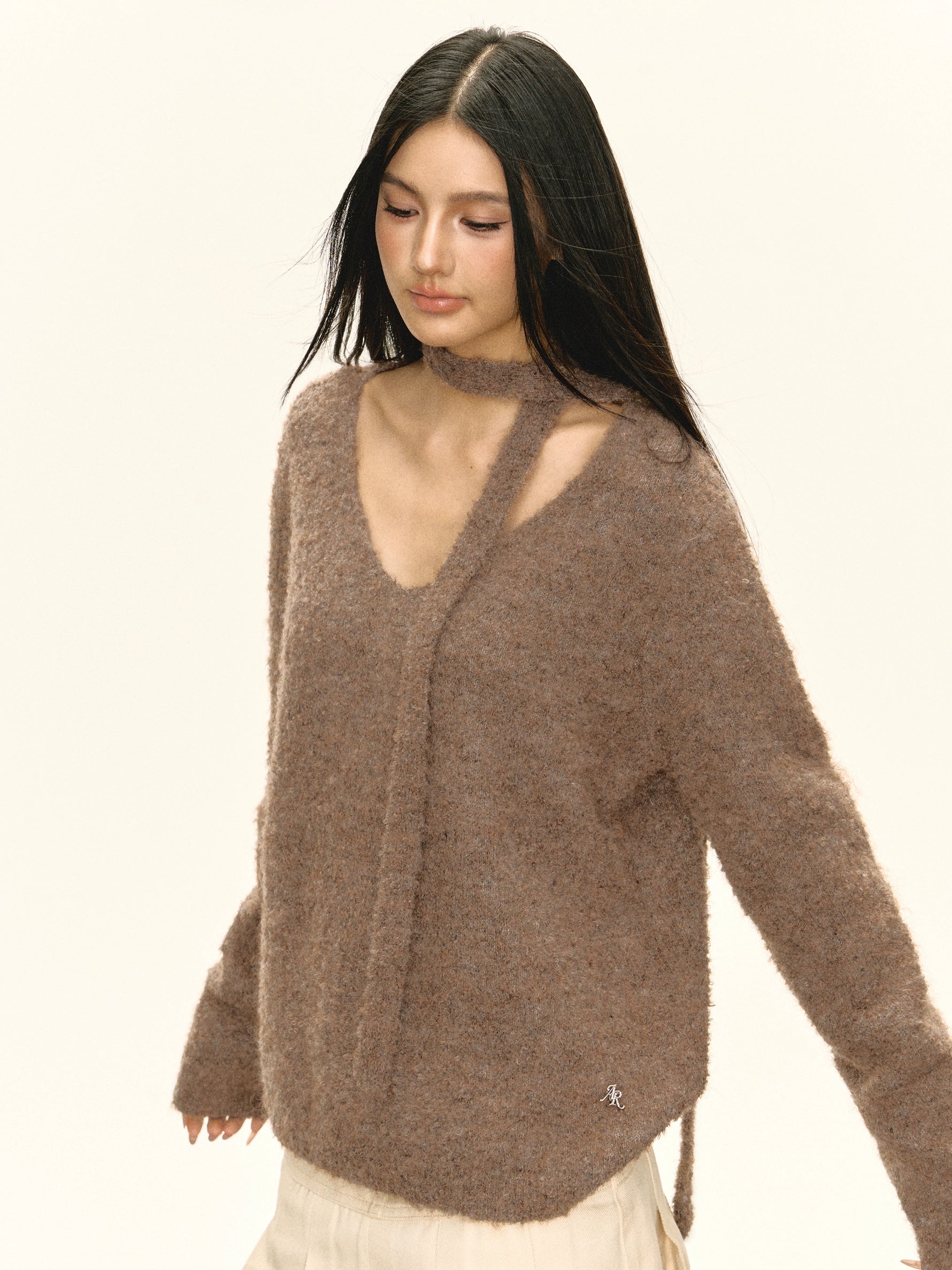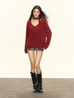 Textured V-Neck Sweatshirt