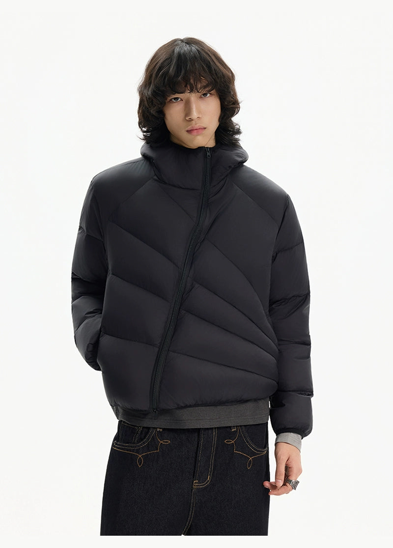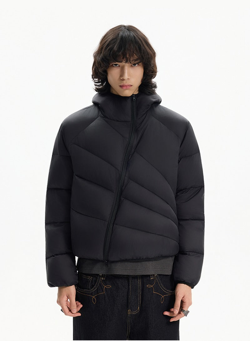 Lightweight Diagonal-Zip Puffer Down Jacket