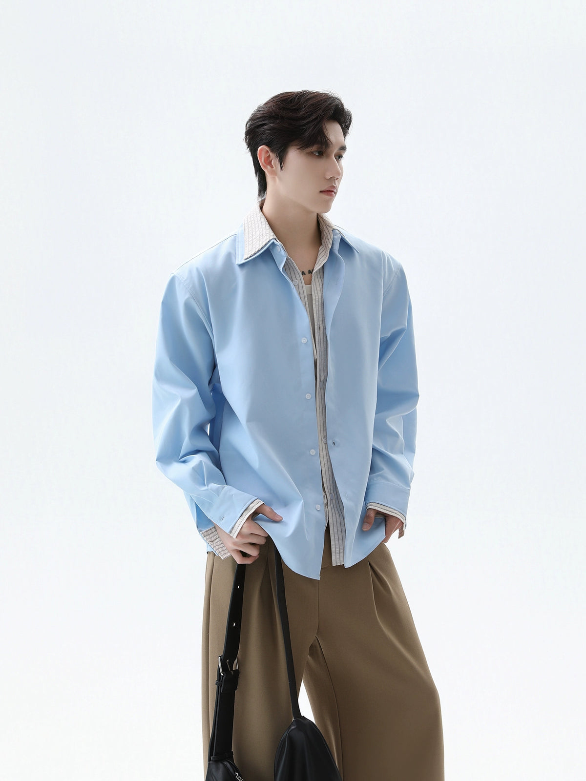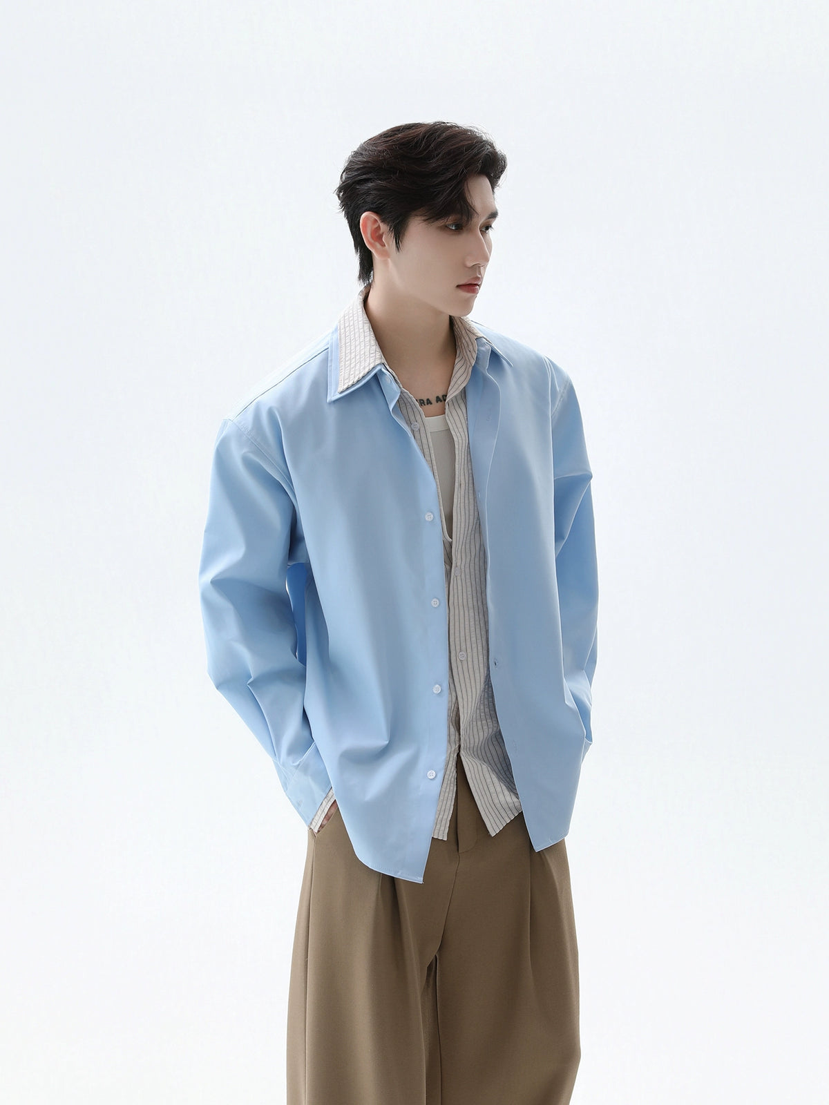 Double Layer Striped Stitching Shirt