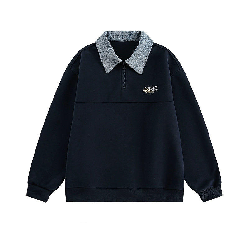 Embroidered Half Zip Polo Sweatshirt