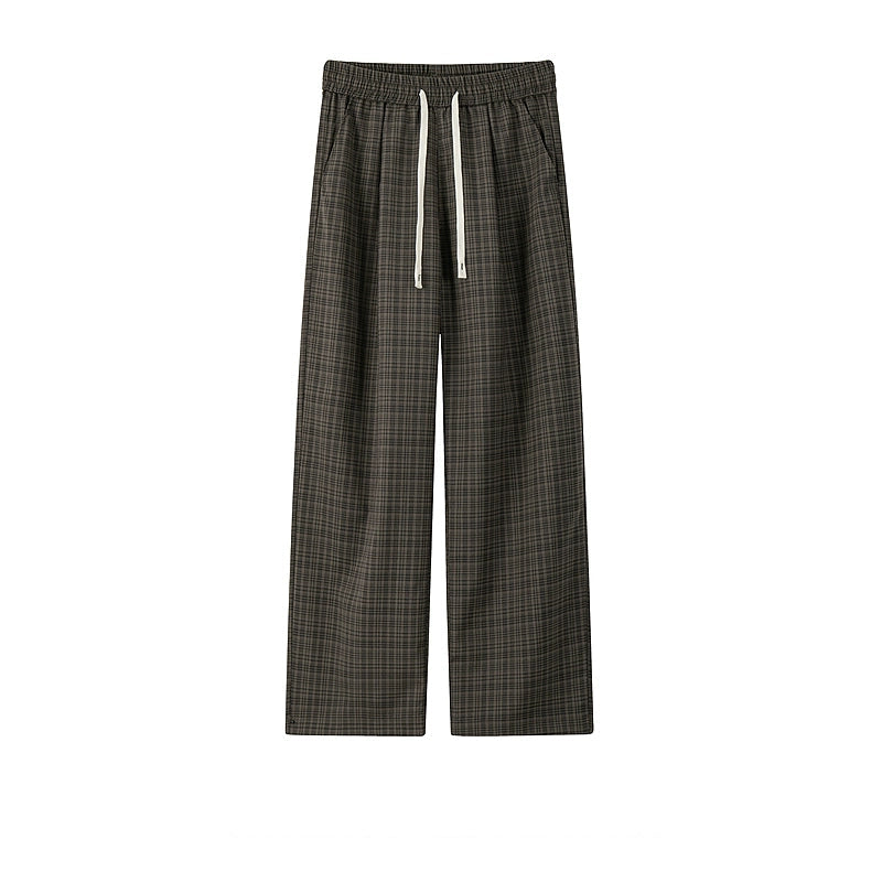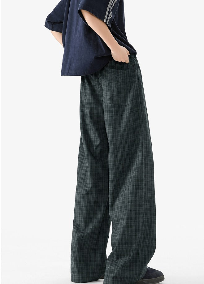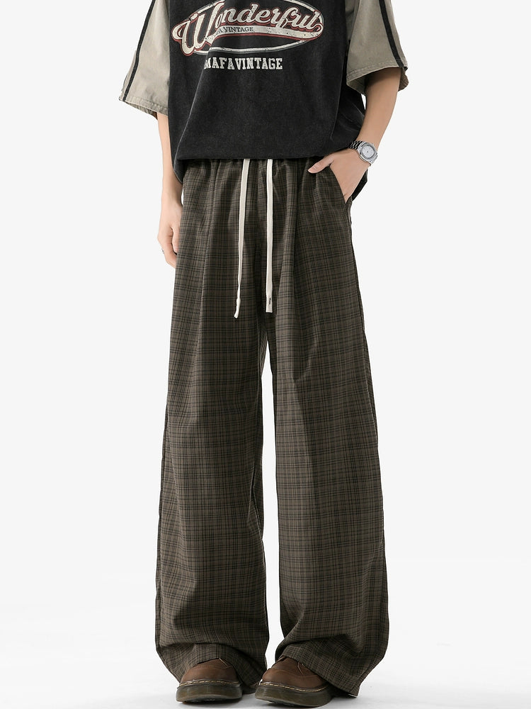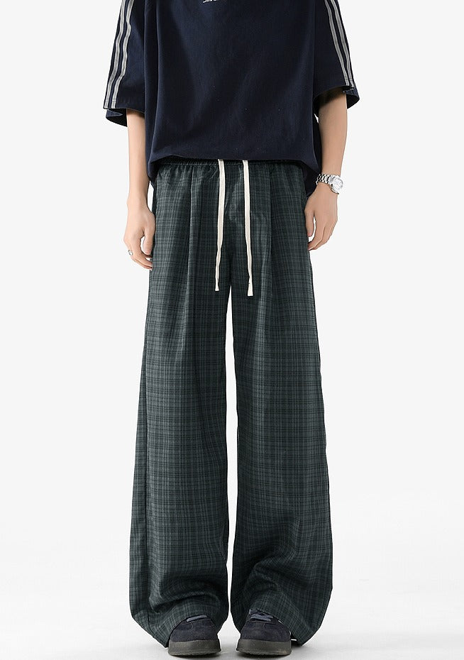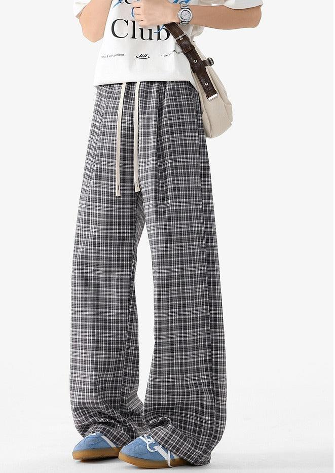 Plaid Elastic Waist Wide Leg Casual Pants