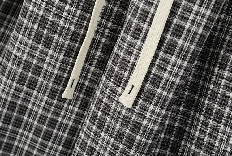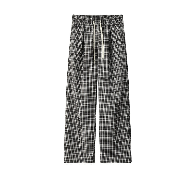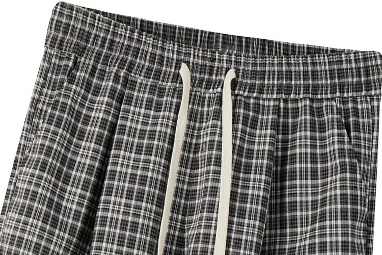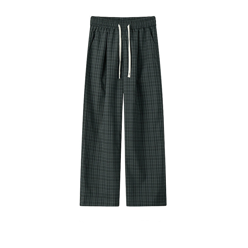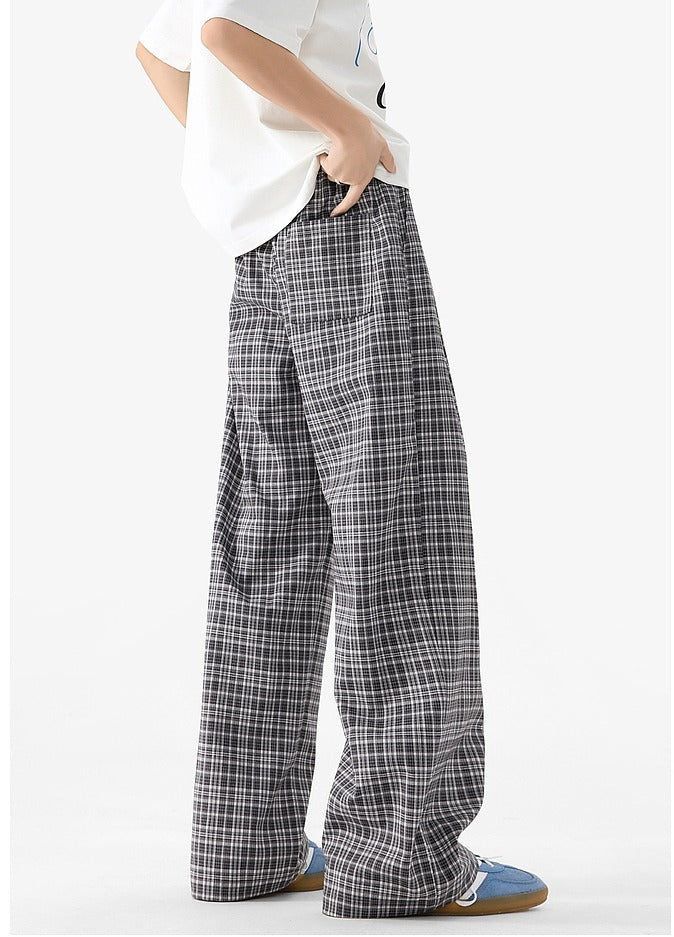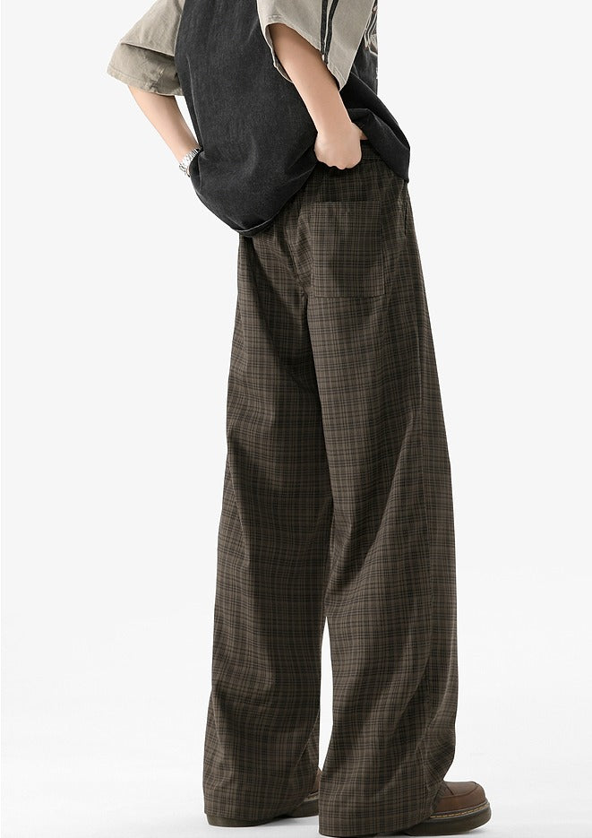 Plaid Elastic Waist Wide Leg Casual Pants