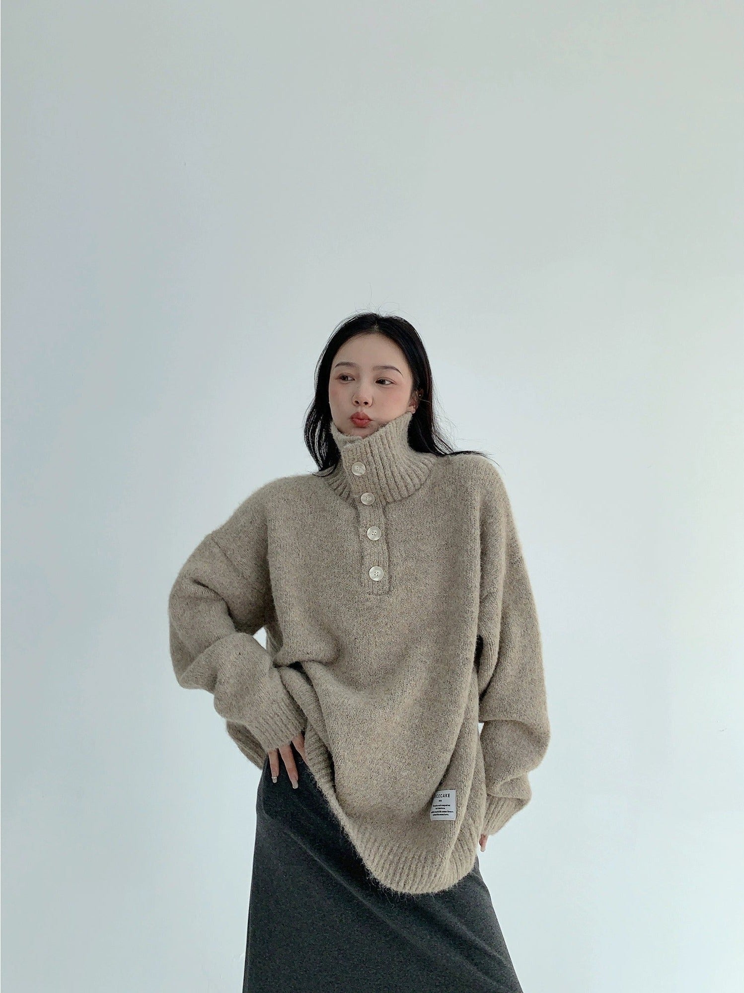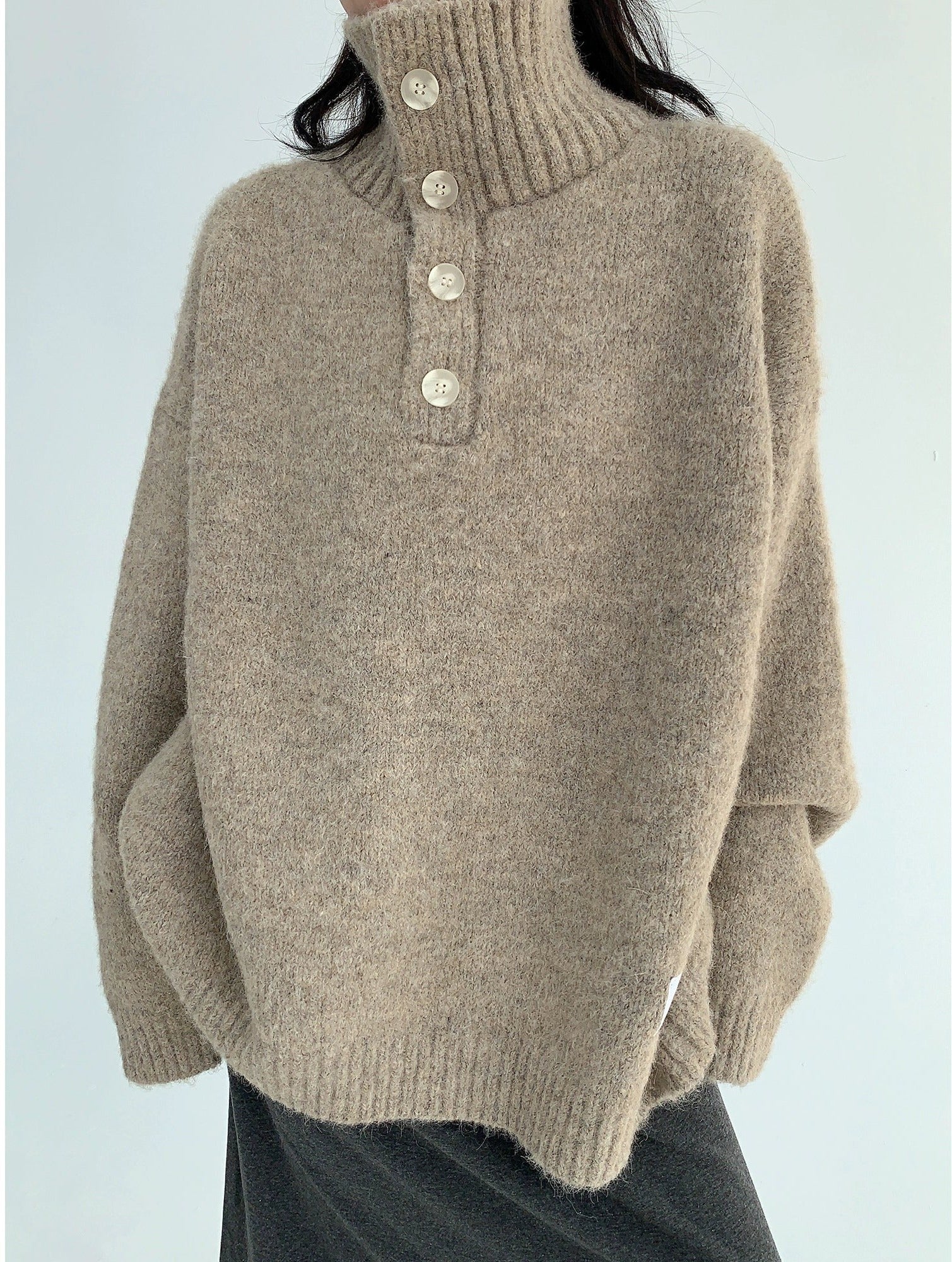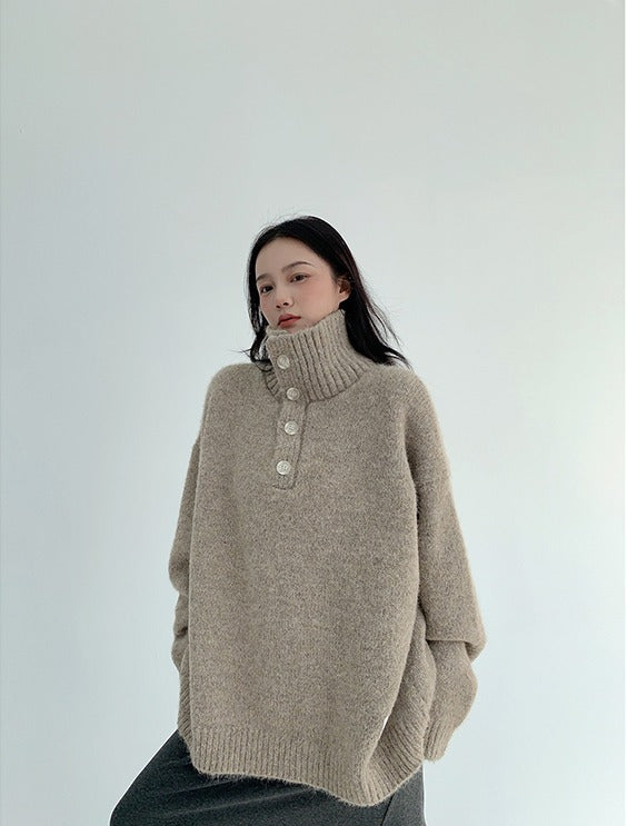 Thick Knit Button Turtleneck Sweater