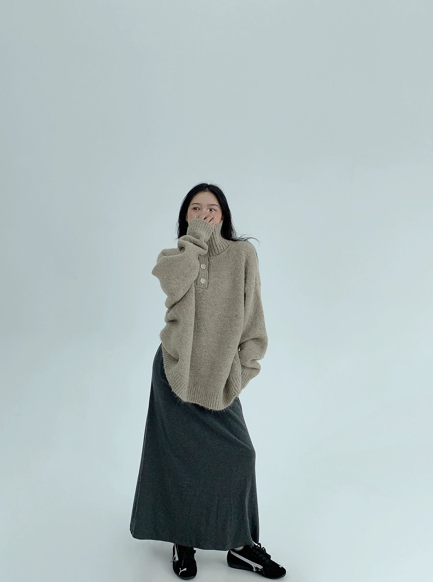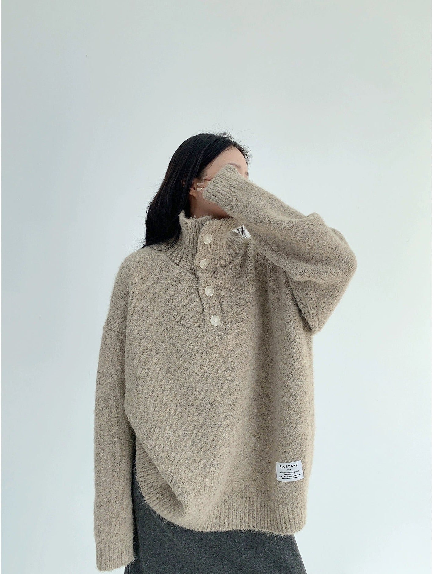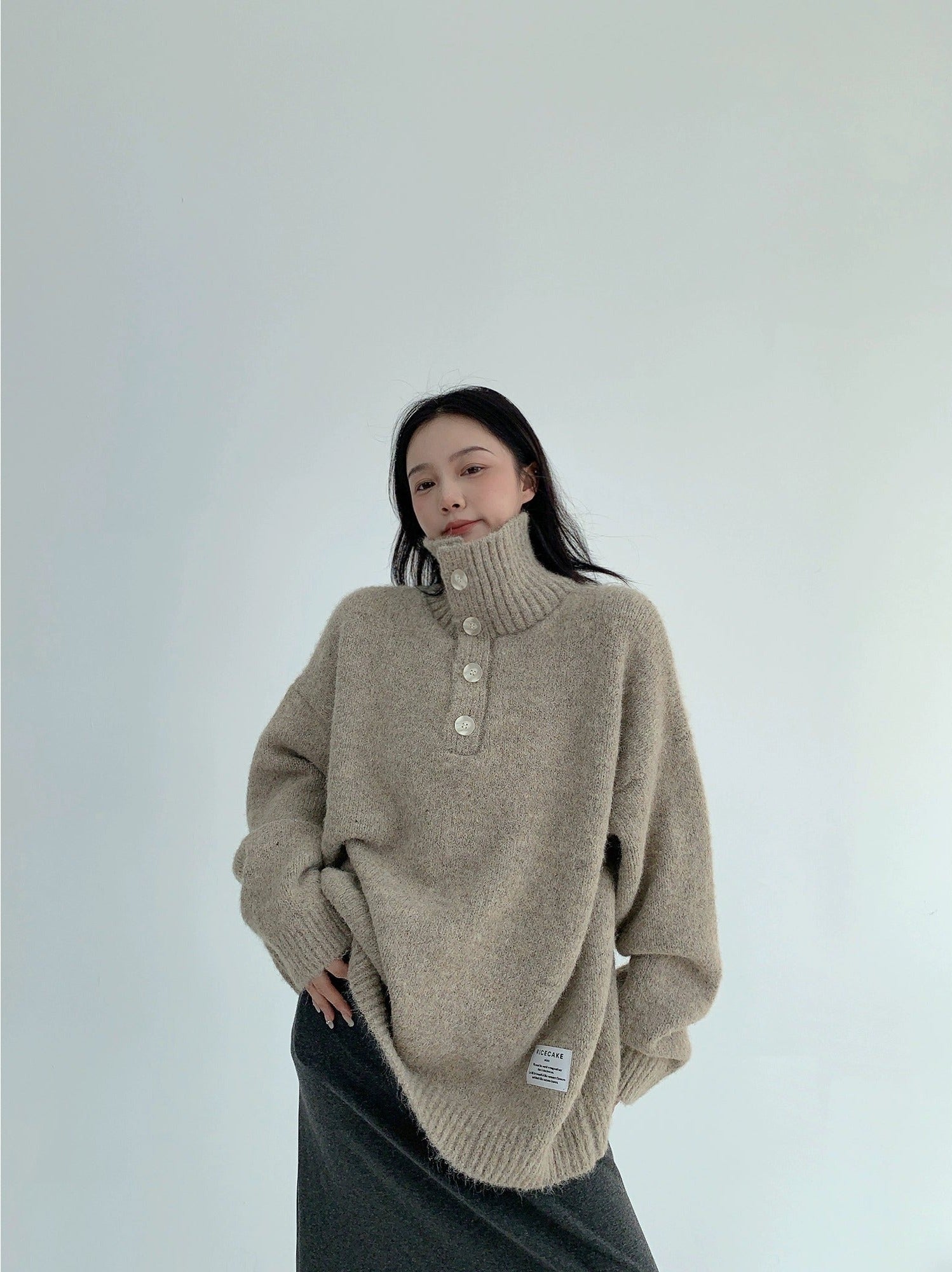 Thick Knit Button Turtleneck Sweater