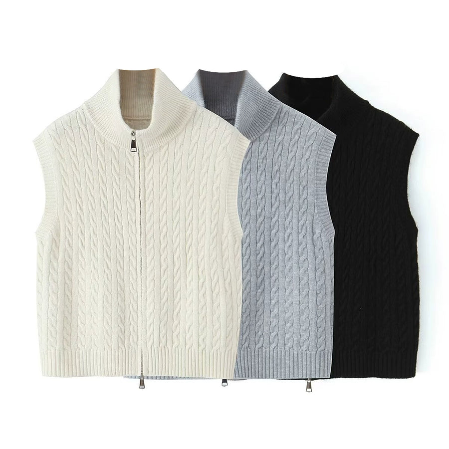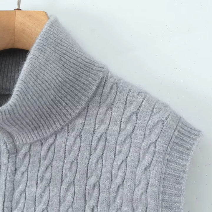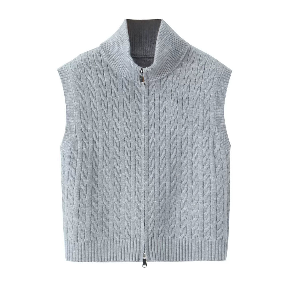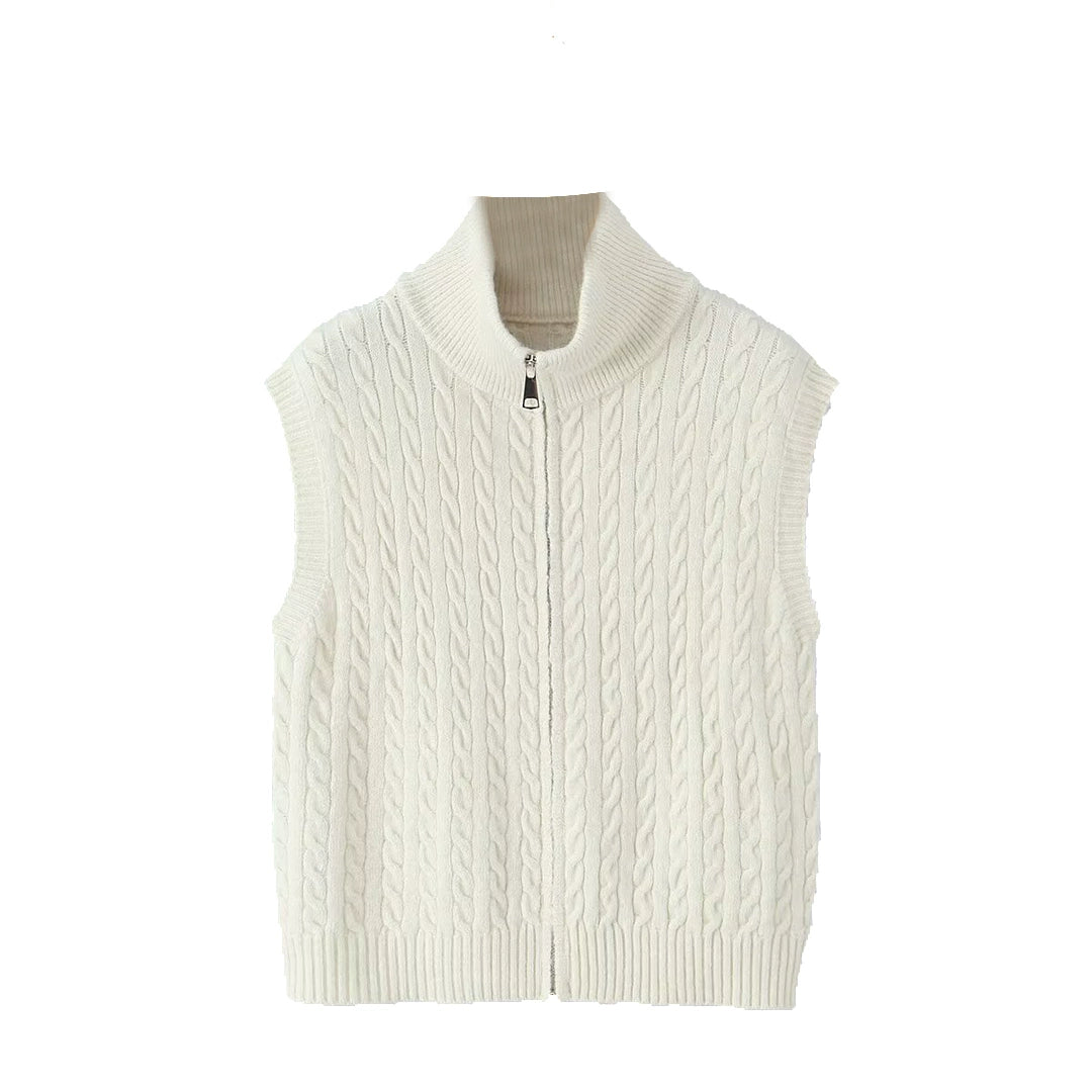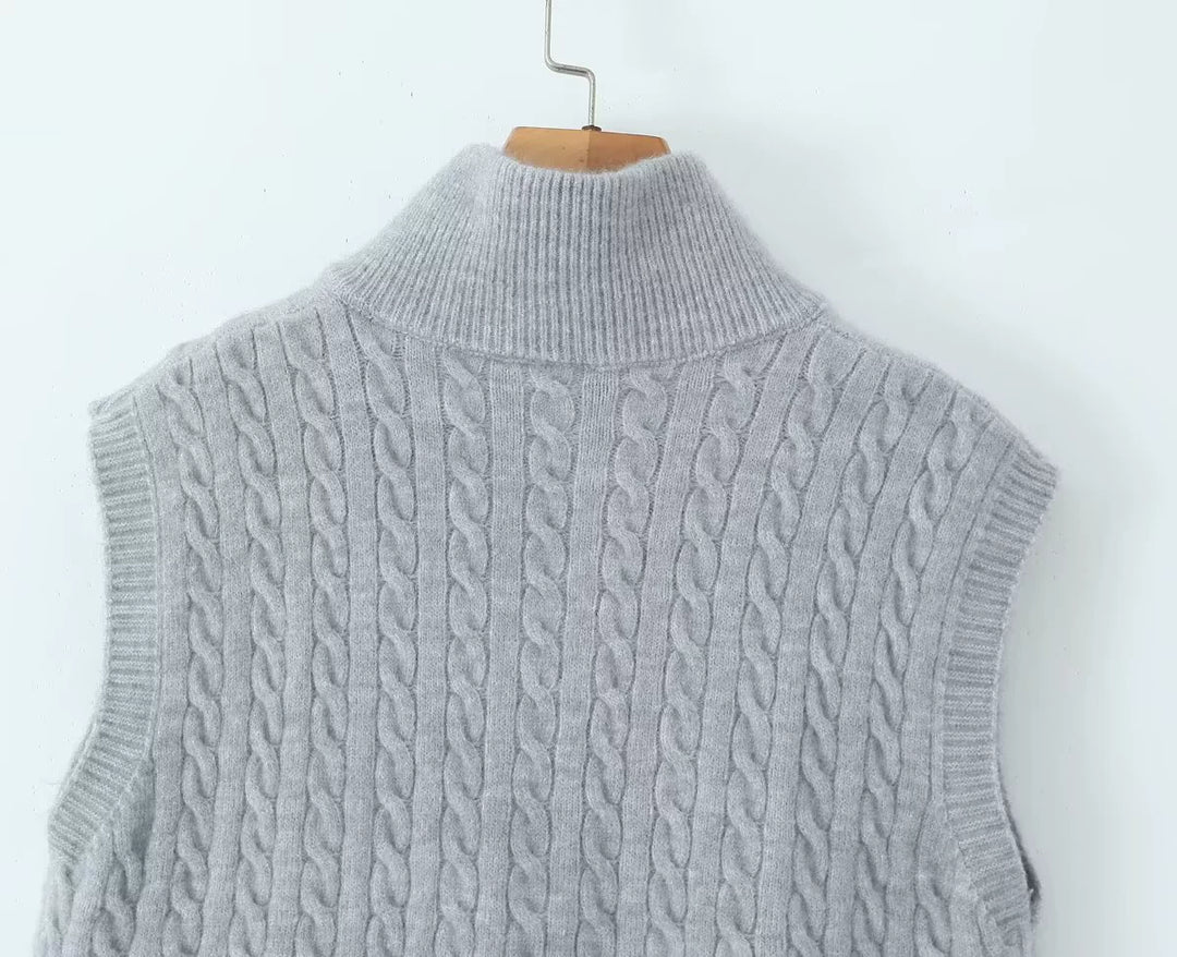 Cable Knit Zip Button Vest