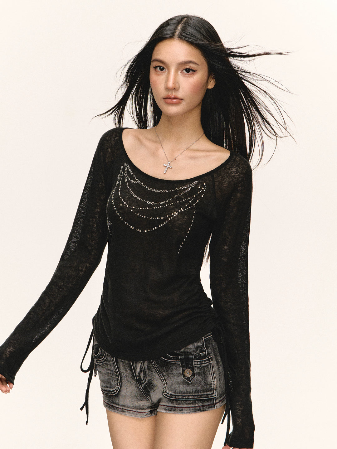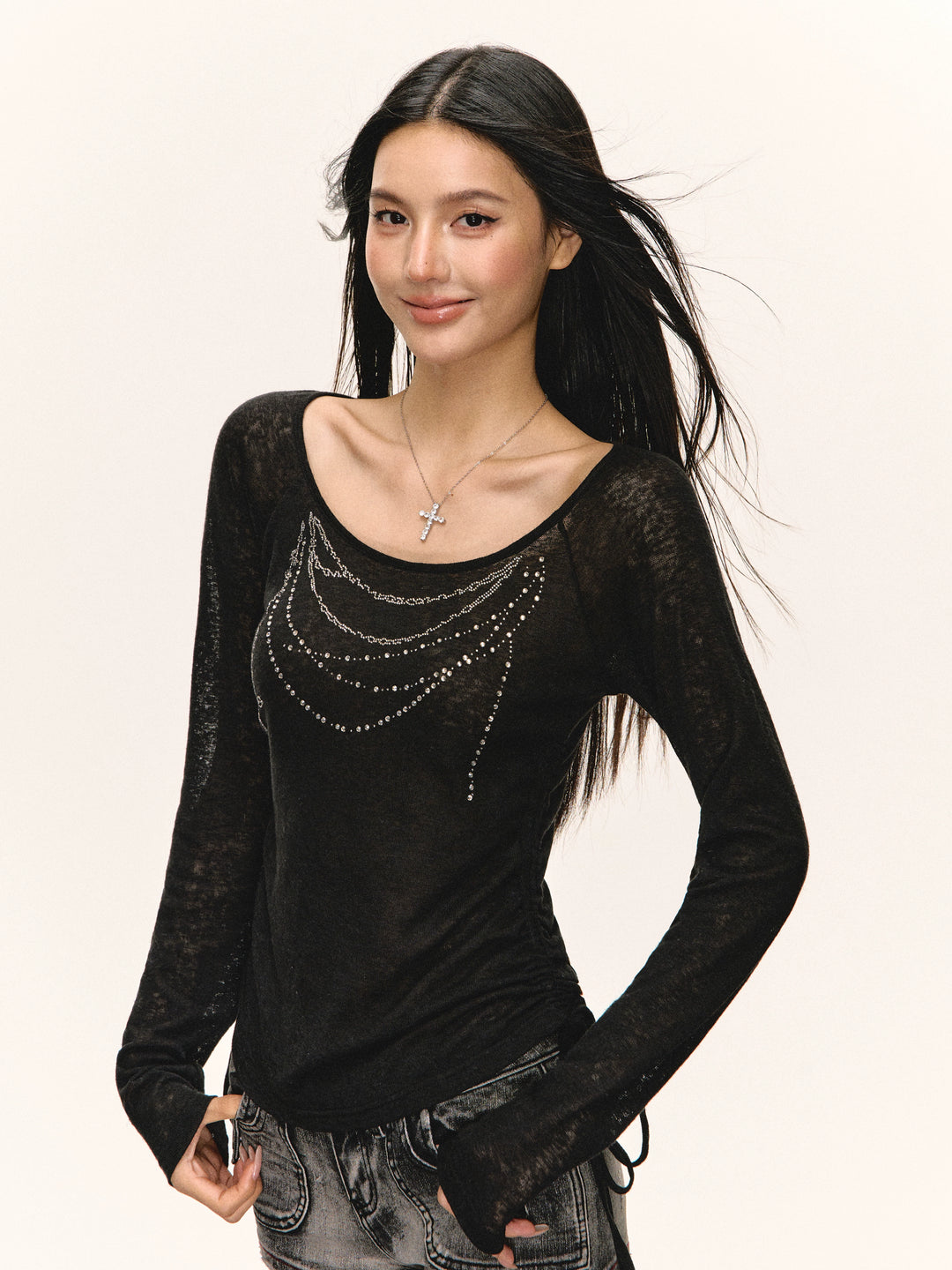 Sheer Long Sleeve Scoop Neck Top