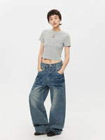 Cropped Letter Print Slim Fit Turtleneck