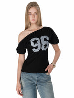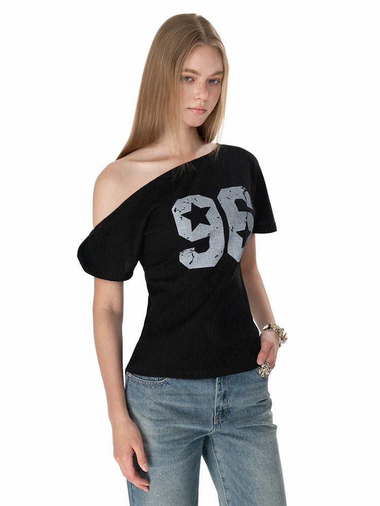 Oblique Shoulder Jersey Style Waffle Top