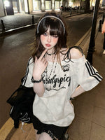 Off-Shoulder Loose Fit Short Sleeve T-shirt