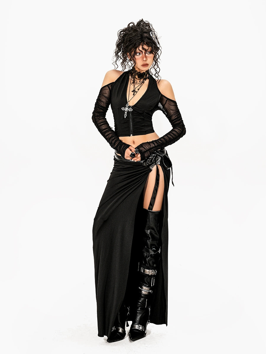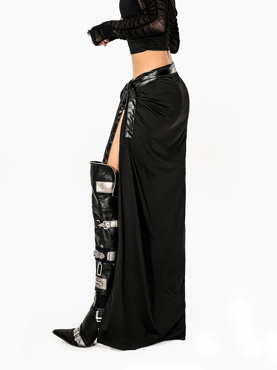 Strappy High Slit Irregular Long Skirt