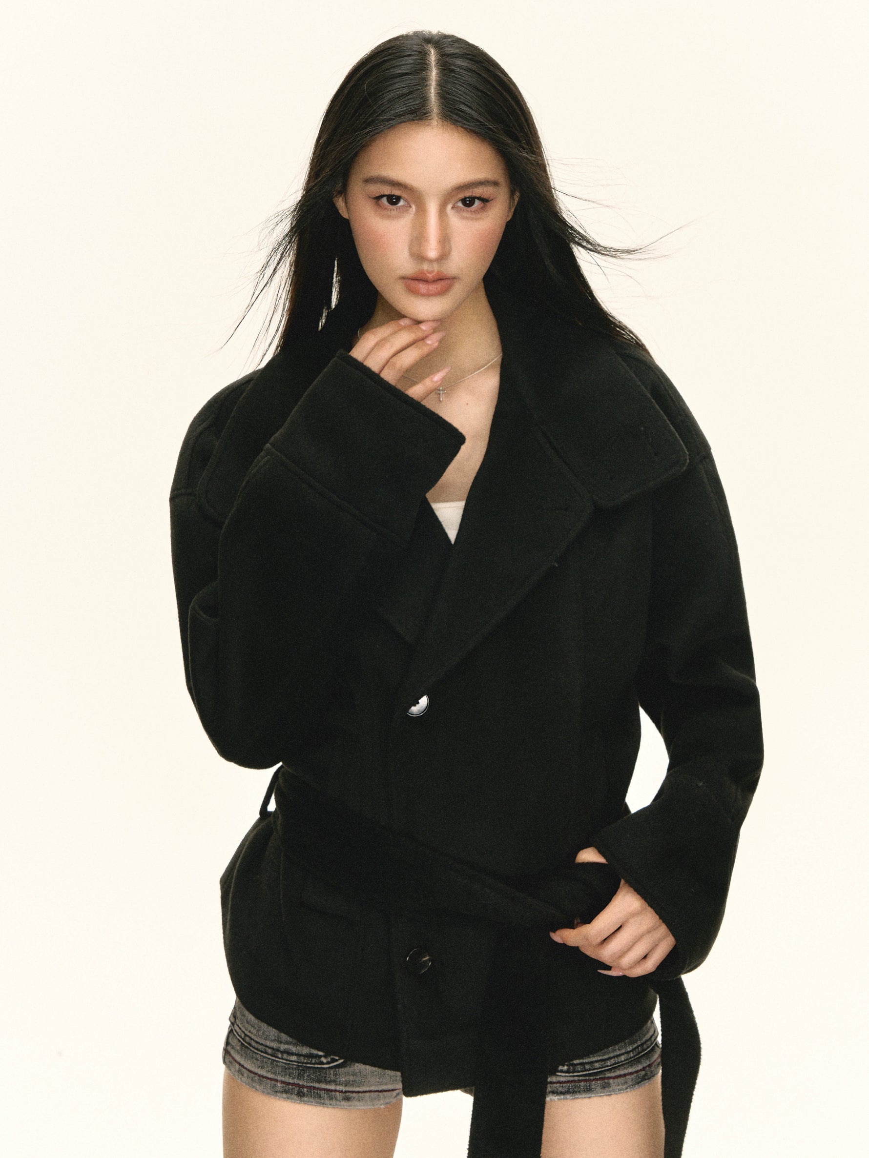 Wool Stand Collar Button Coat