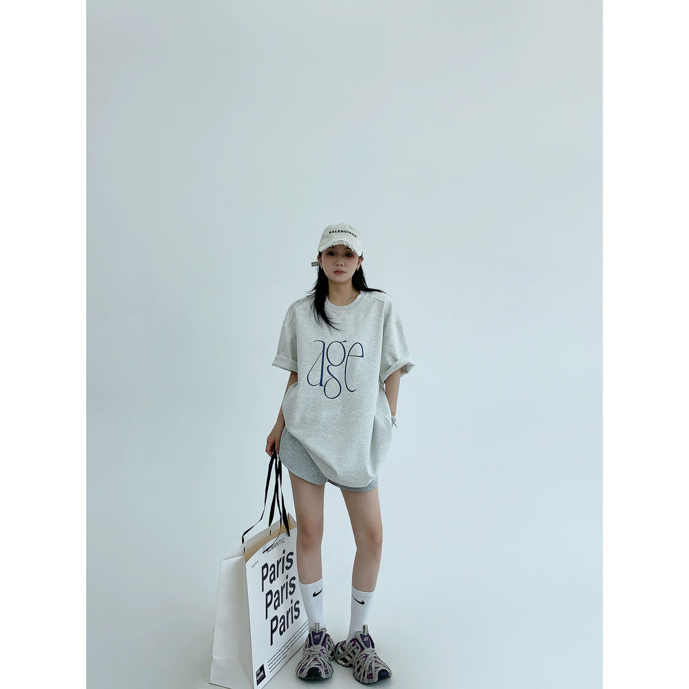 Loose Letter Print Short Sleeve Turtleneck